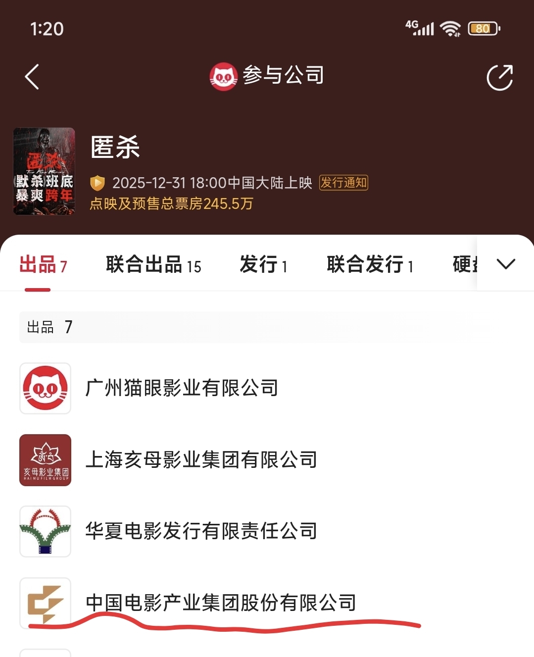 $中国电影(SH600977)$ 就要看电影 匿杀点映口碑了
