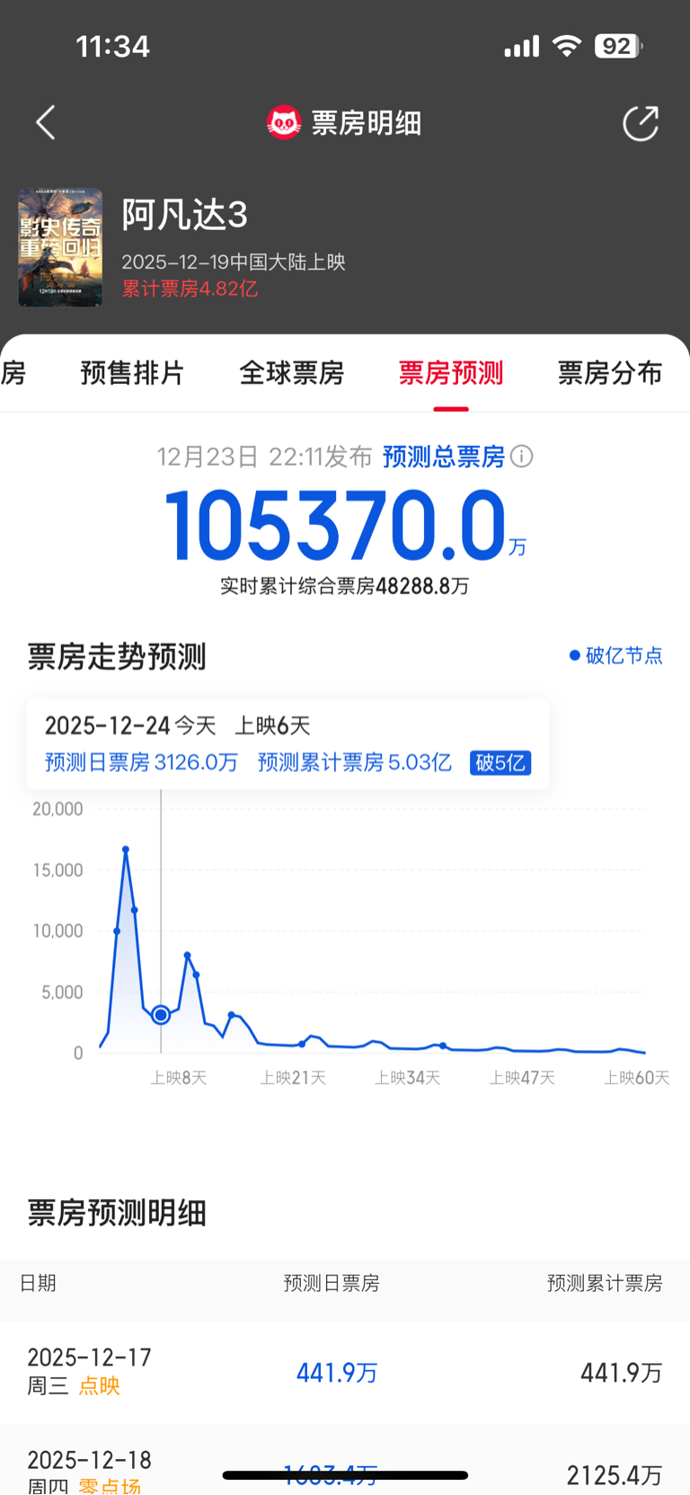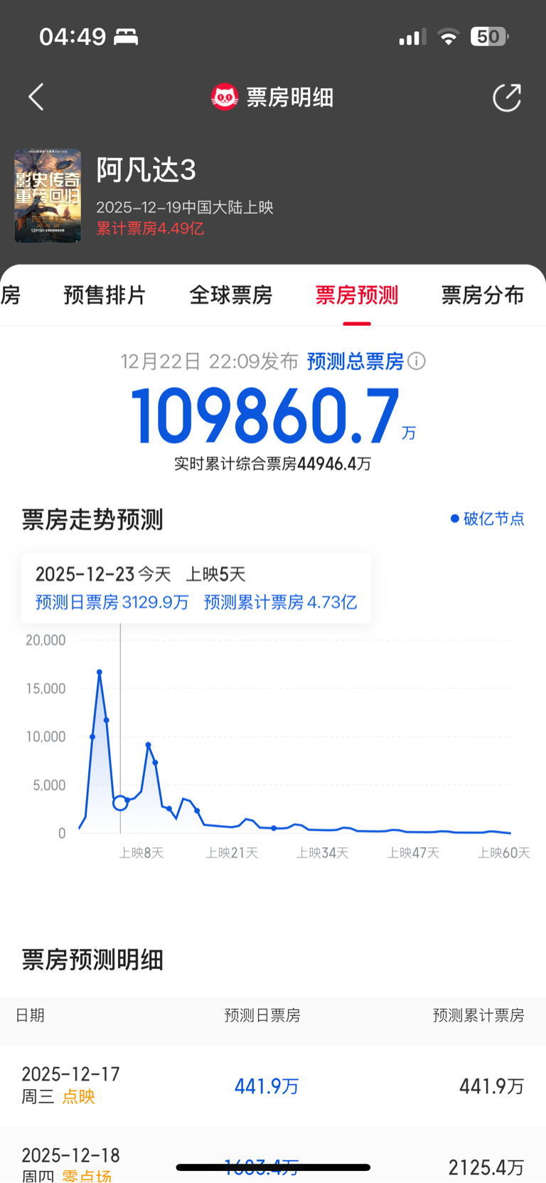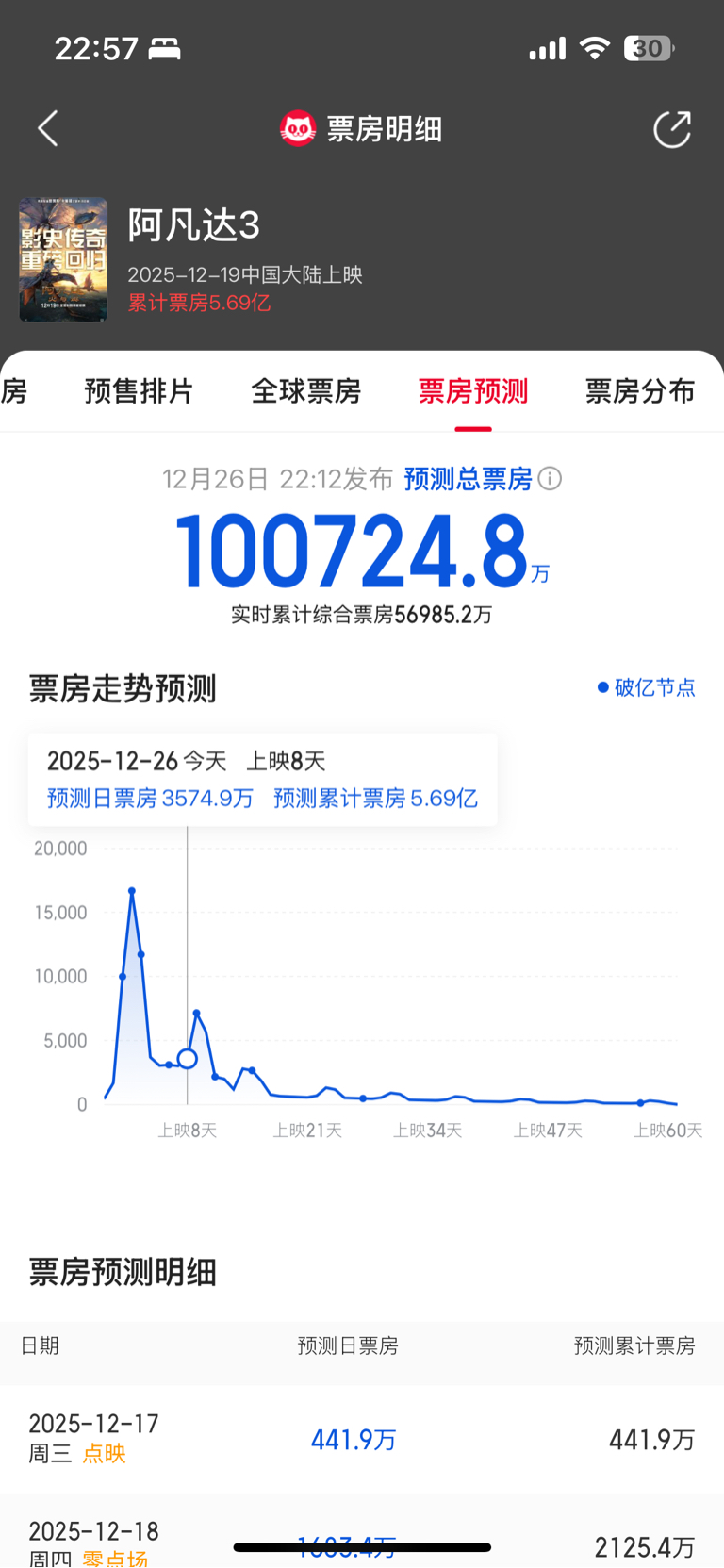 $中国电影(SH600977)$ 阿凡达3预测票房再创新低,即将跌破十亿大关