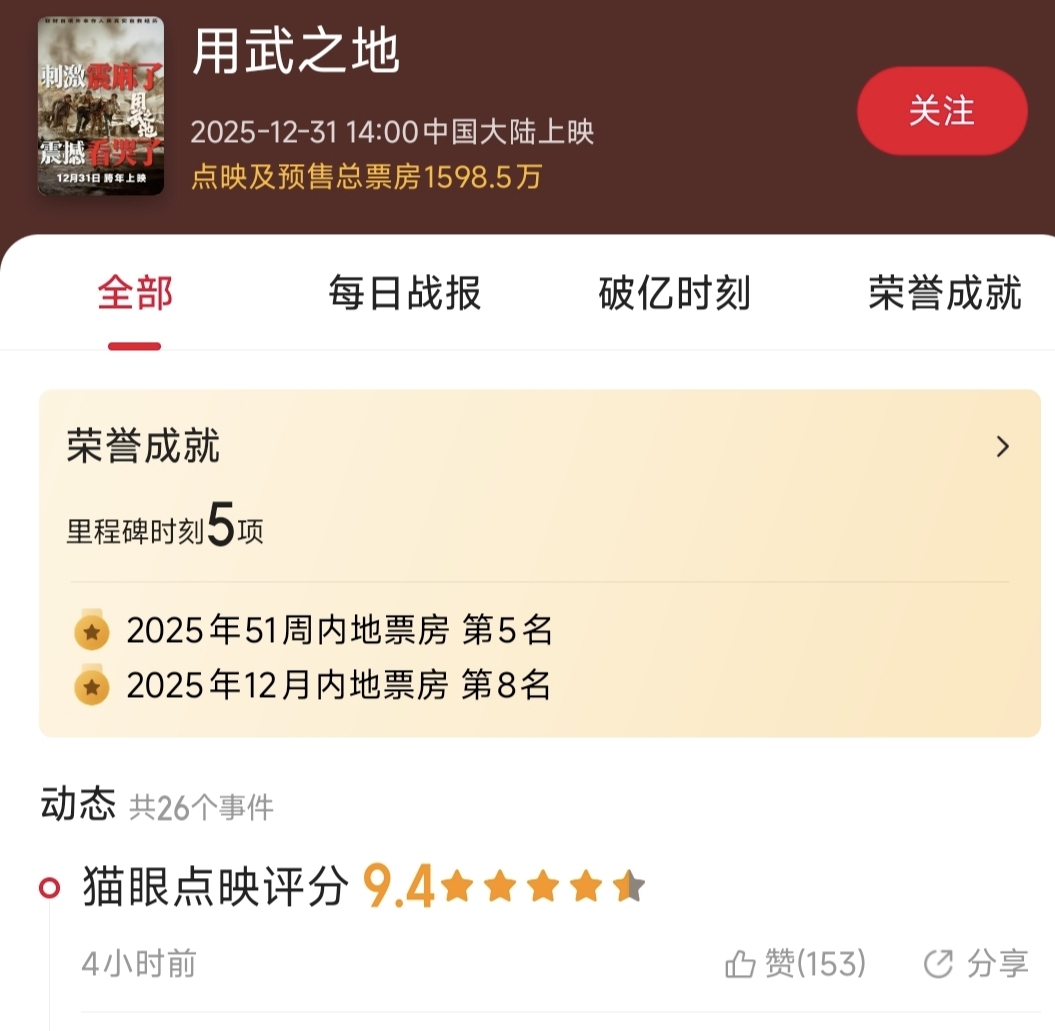 $中国电影(SH600977)$ 电影用武之地评分出炉