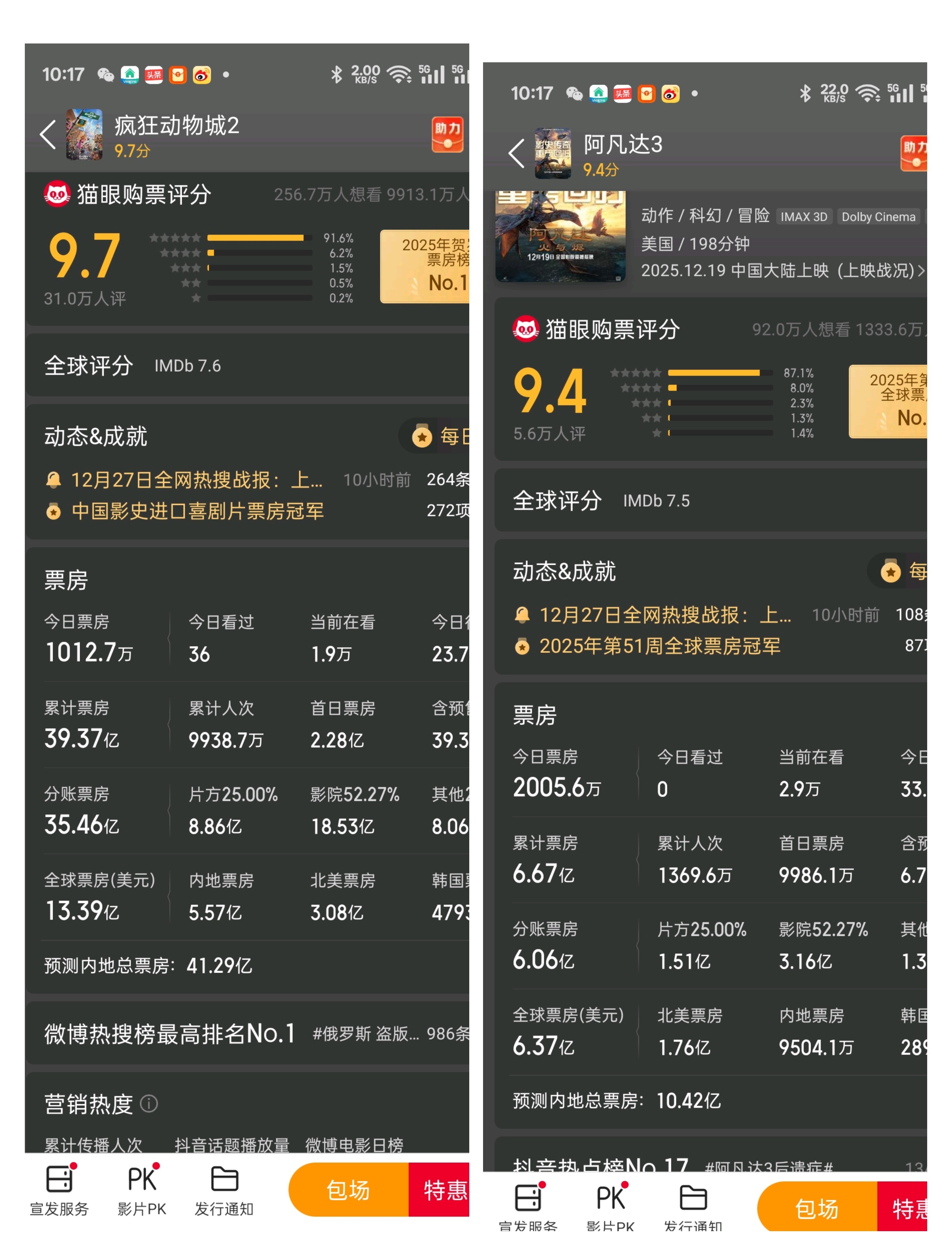 还是那个观点,疯狂动物城我们比北美票房多了80%,阿凡达北美反过来多我们80%。结论不是阿凡达不卖座,是大荧幕IMAX和CINITY的太少。或者说是知道CINITY的人不够多。中影还有活没干好。否则收入会更好。又或者他想留点业绩在明年。