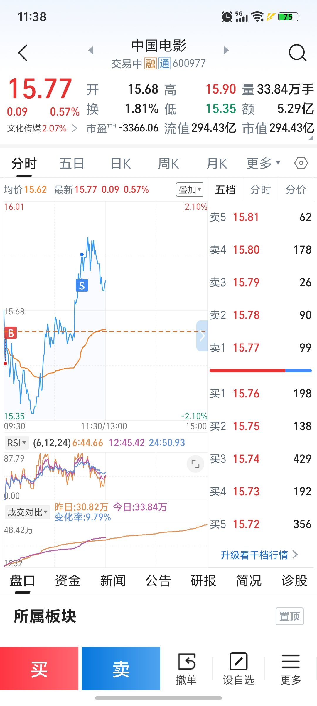 $中国电影(SH600977)$ 蓝色光标带动板块起来了,做了个T,后挂了20日线卖半仓看看能不能出半仓,黄金坑,看好春节前的上涨