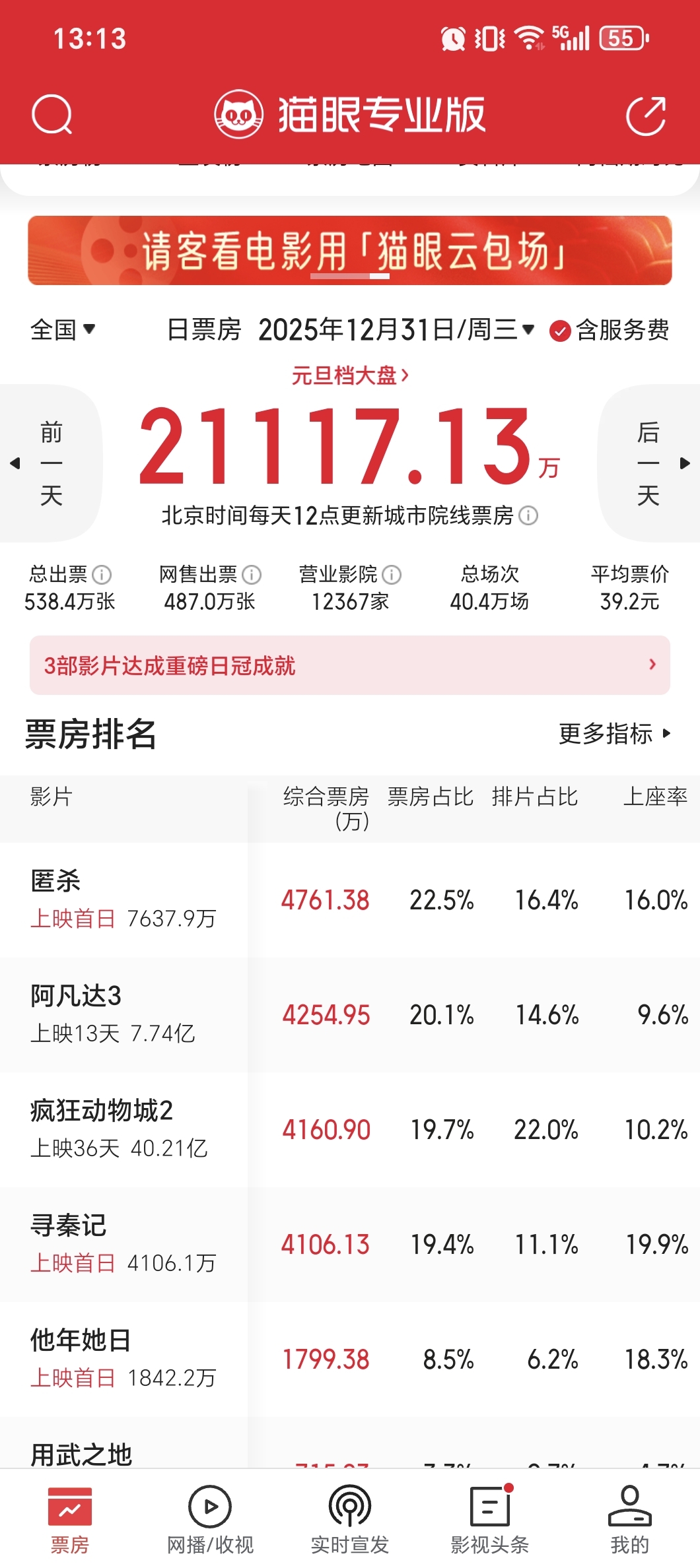 $中国电影(SH600977)$ 排名前三的电影多是中国电影出品方