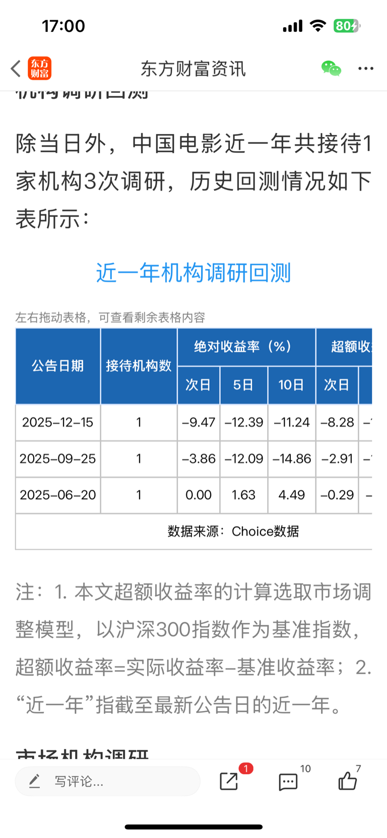 $中国电影(SH600977)$ 历史上这只股票机构调研第二天必跌,五天跌幅十个点以上