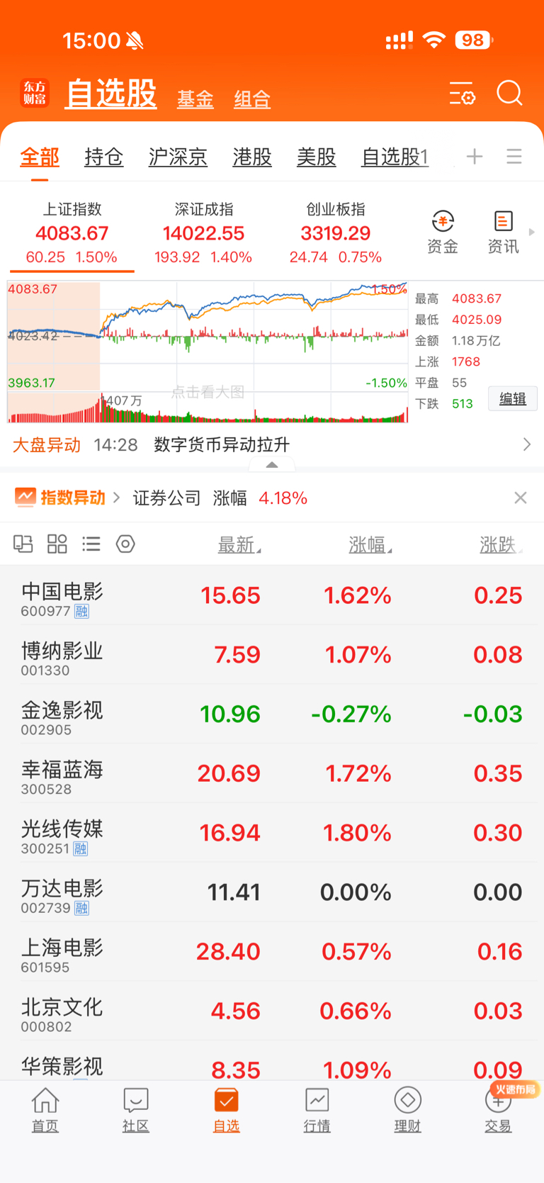 $中国电影(SH600977)$ 这是正宗的影视概念股票,中影位列前列,算得上是影视的龙头股,到时候影视板块涨的时候中影一定是带头的