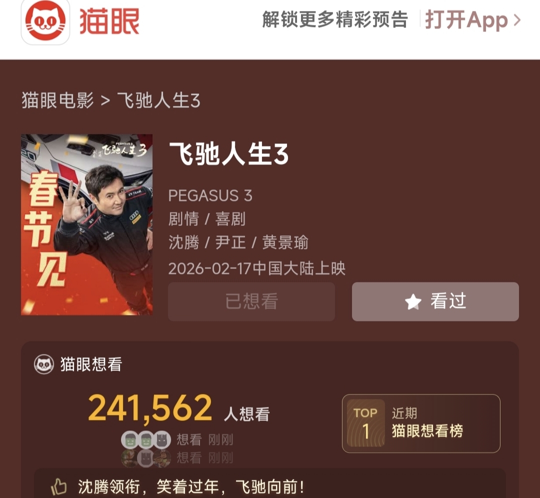 大家继续点击呀猫眼飞驰人生3