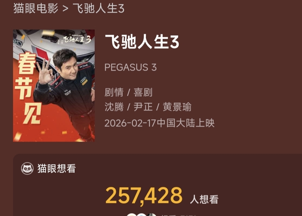 $中国电影(SH600977)$ 飞驰人生目前25万,大家继续点击呀