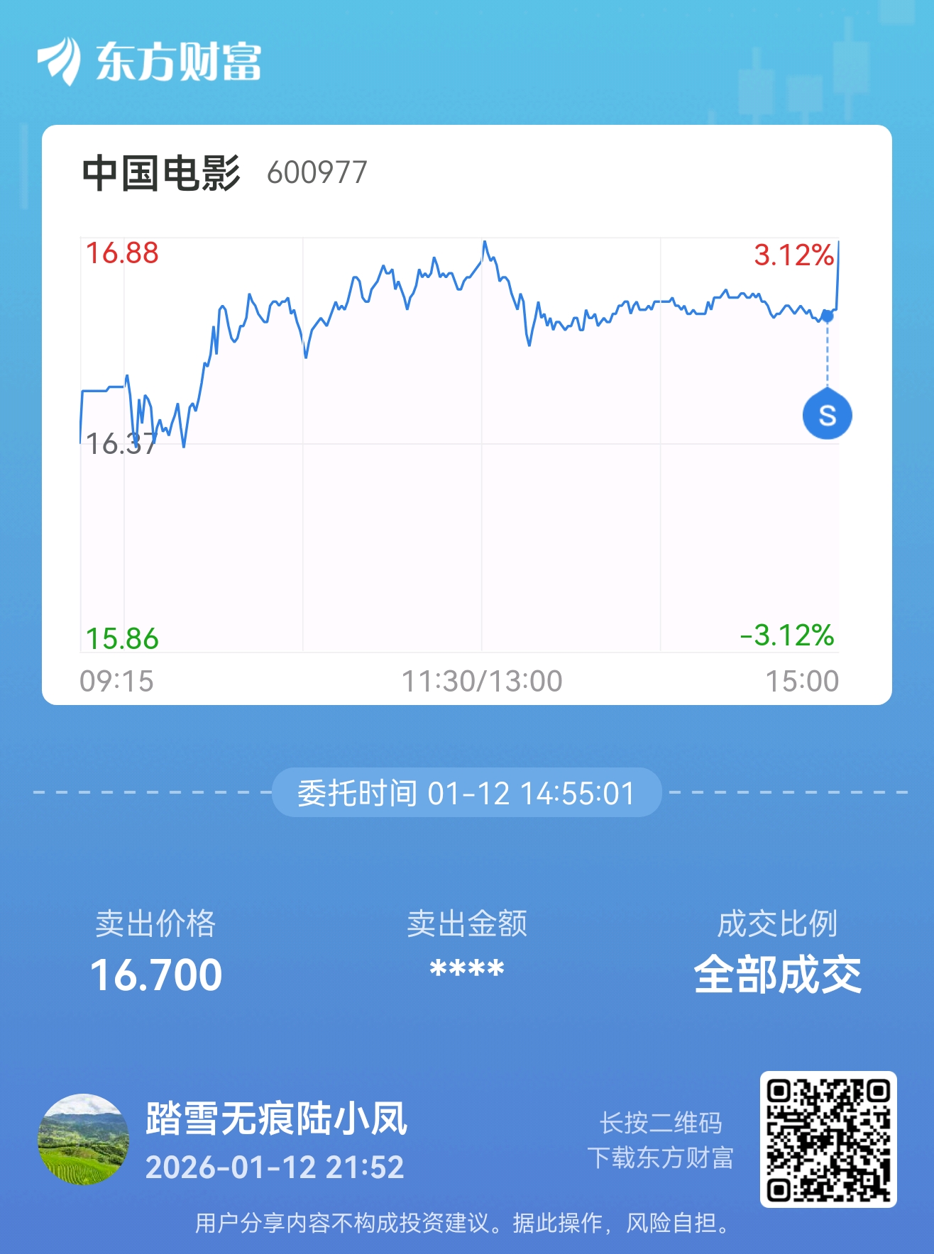 $中国电影(SH600977)$ 熬过了34天,没能熬过最后3分钟。哎,板块大涨两天,这货弱的一批,实在是拿不住了。回本了,先撤了。明天会是高开秒板