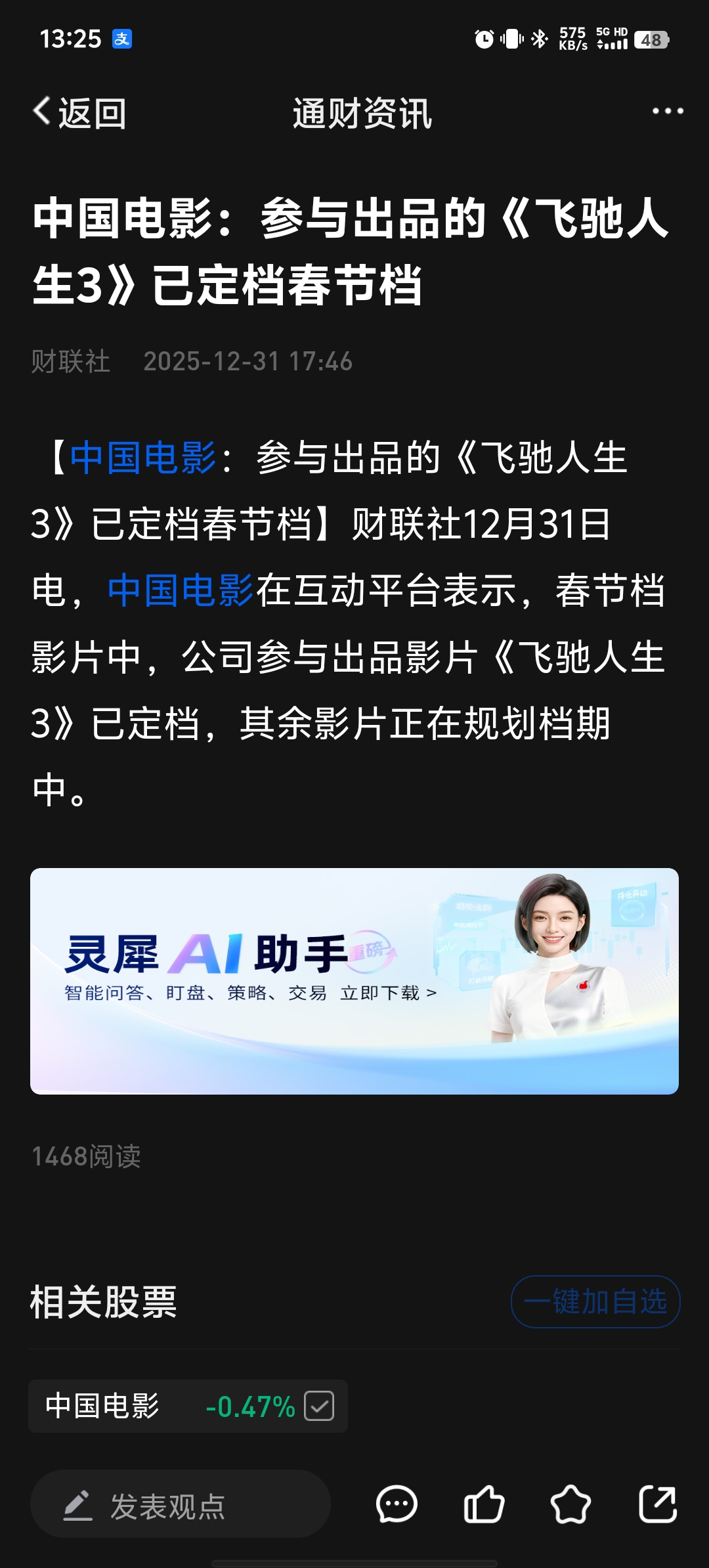 $中国电影(SH600977)$ 让入手,你就跌成狗