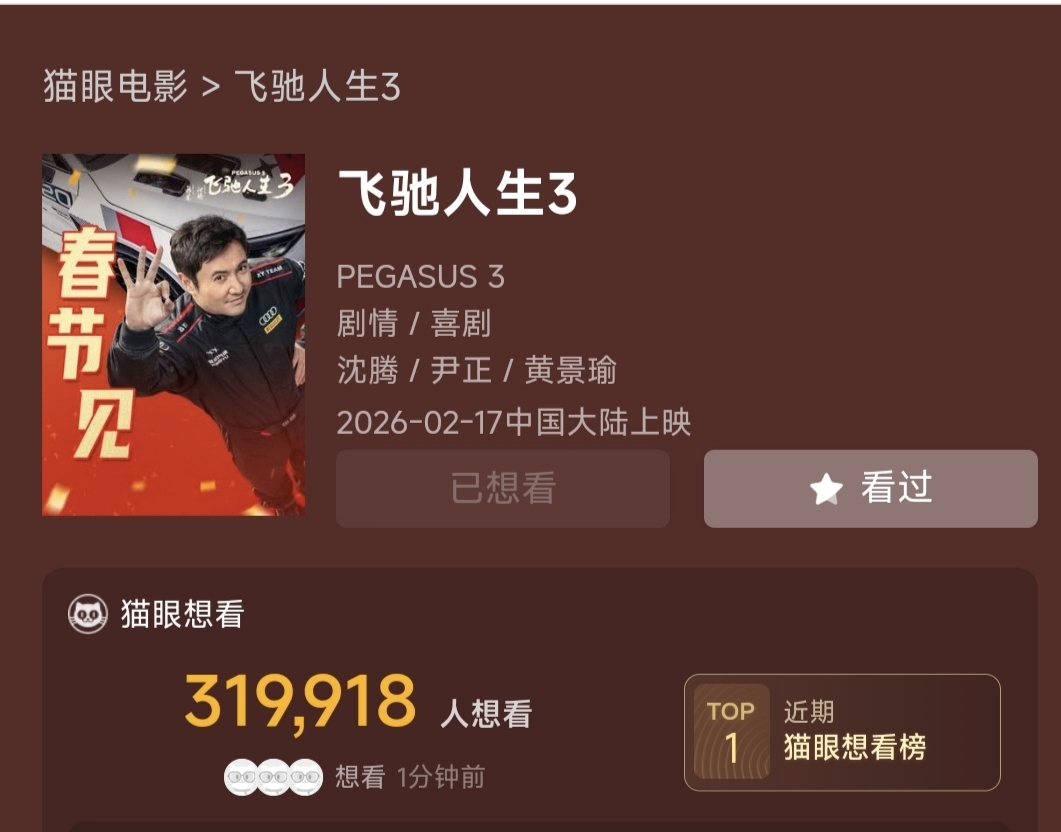 $中国电影(SH600977)$ 电影飞驰人生3马上破32万了,大家继续点击呀并转发,猫眼搜飞驰人生3。大家只有多点,中国电影才能涨停