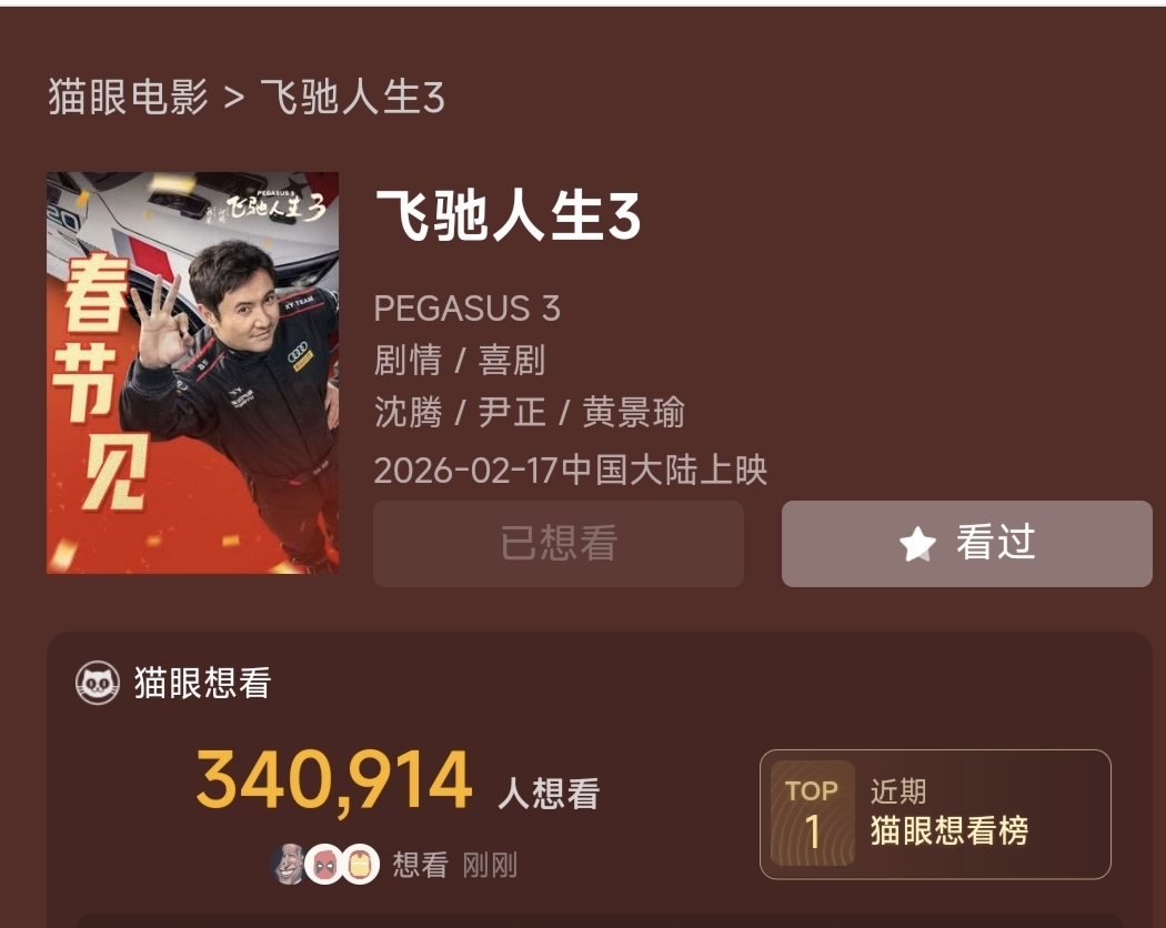 $中国电影(SH600977)$ 电影飞驰人生3破34万,主力拉5%以上,人数太少。猫眼搜飞驰人生3,