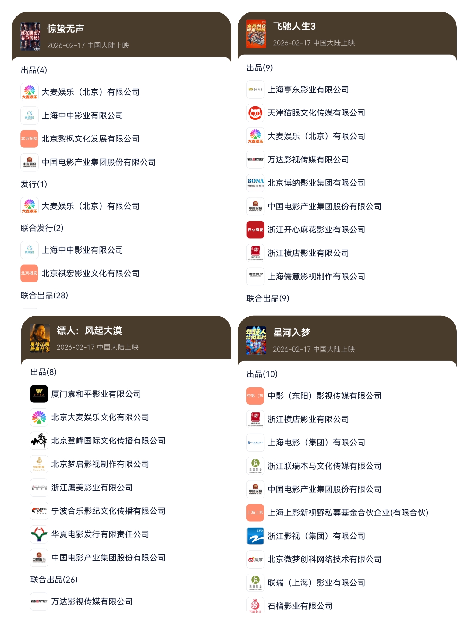 $中国电影(SH600977)$ 目前官宣的都有中国电影