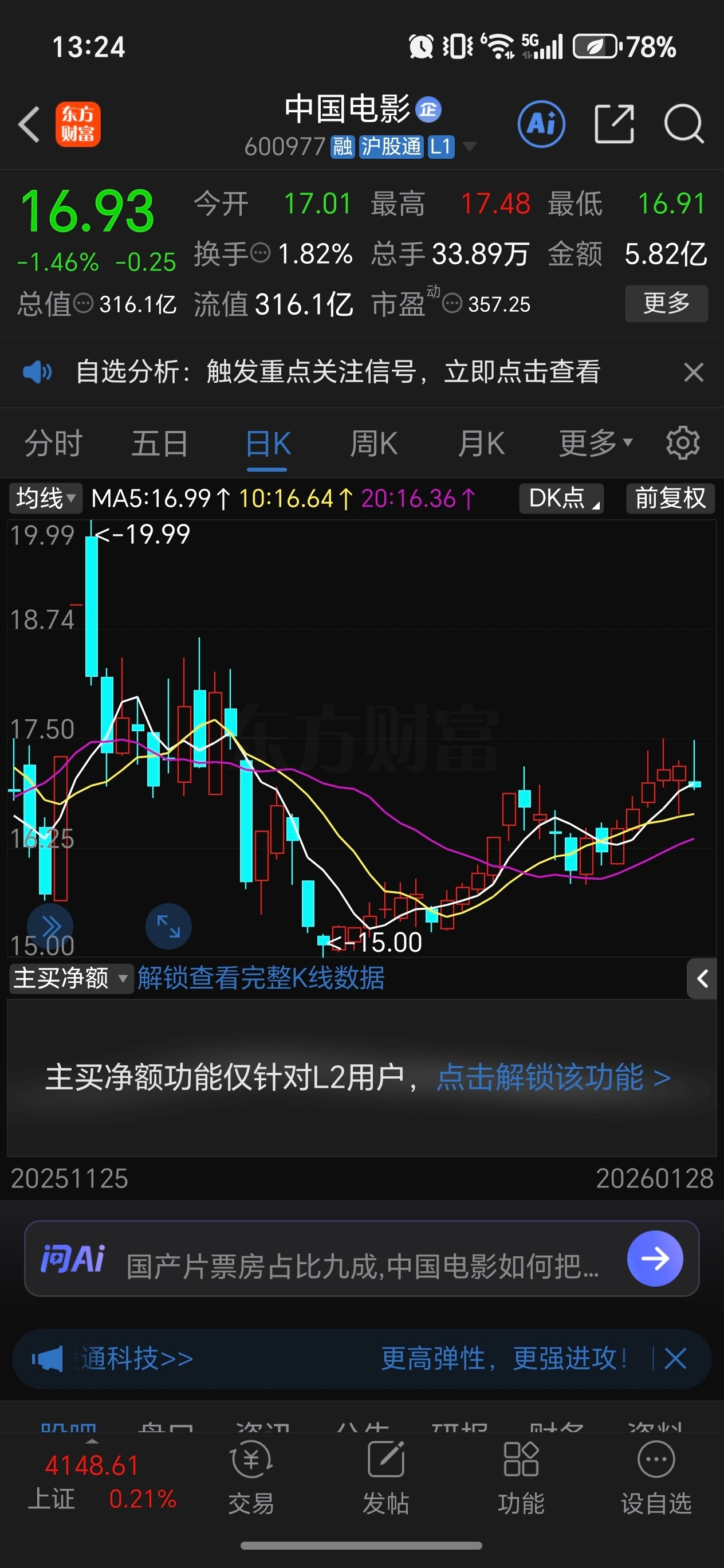 $中国电影(SH600977)$