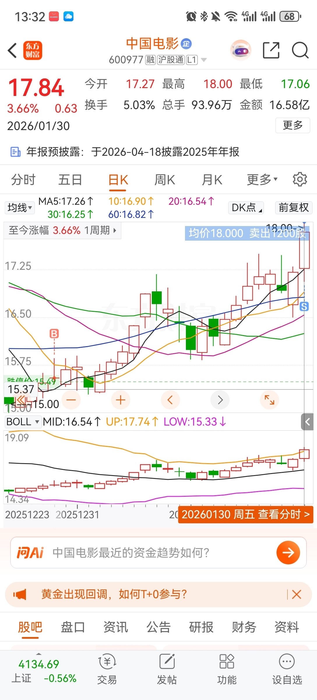 $中国电影(SH600977)$ 不知道说什么好,被搞怕了,落袋为安先吧