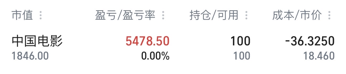 $中国电影(SH600977)$ 陪了你们两个月的李根走了,再也不来了,李根忍了两个月这支股的折麽还是不停的在股吧给各位加油打气,各位能熬到回本日不知道曾经有没有受到李根的加油打气过,最后祝各位发财,中影评论区没有李根了