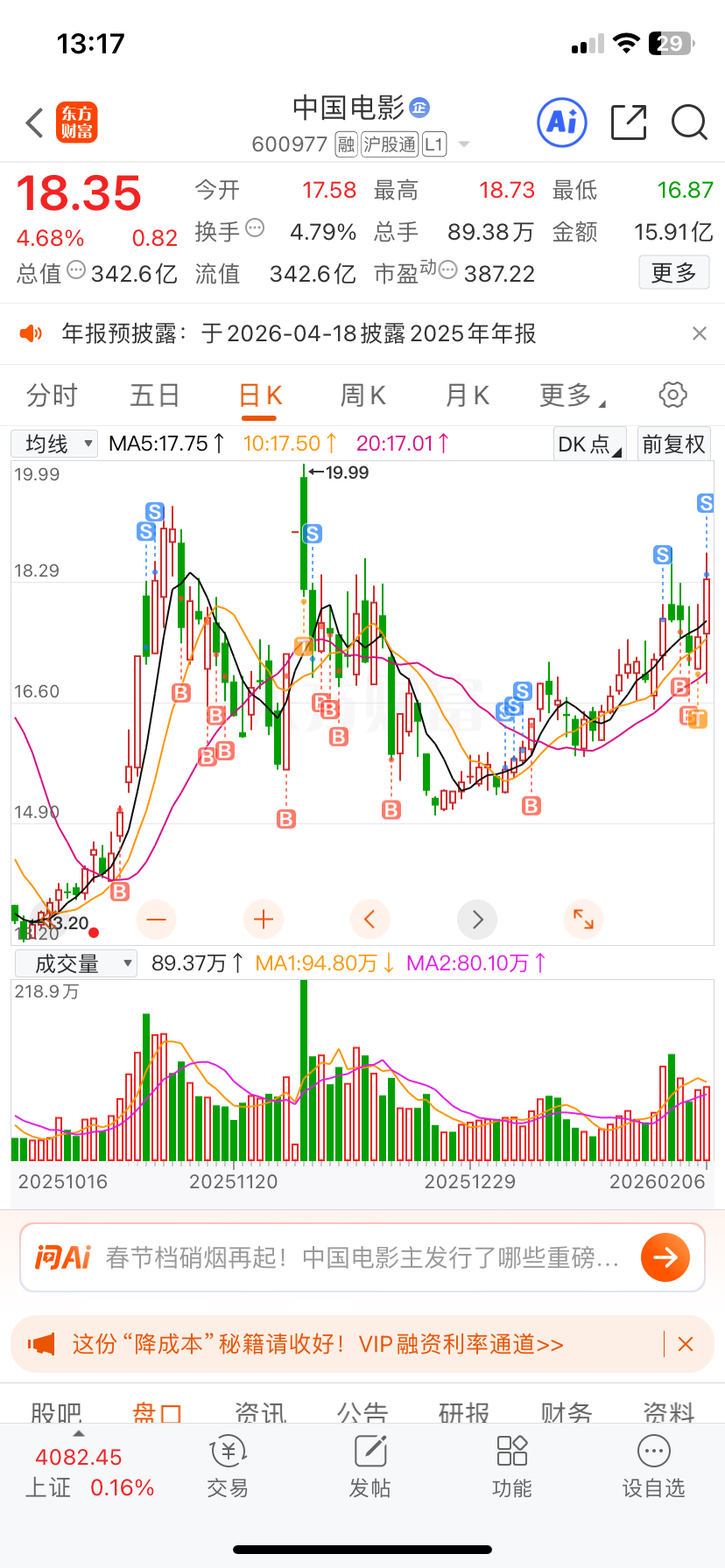 $中国电影(SH600977)$ 半年了,终于解套了,还小赚 ,下次还买你