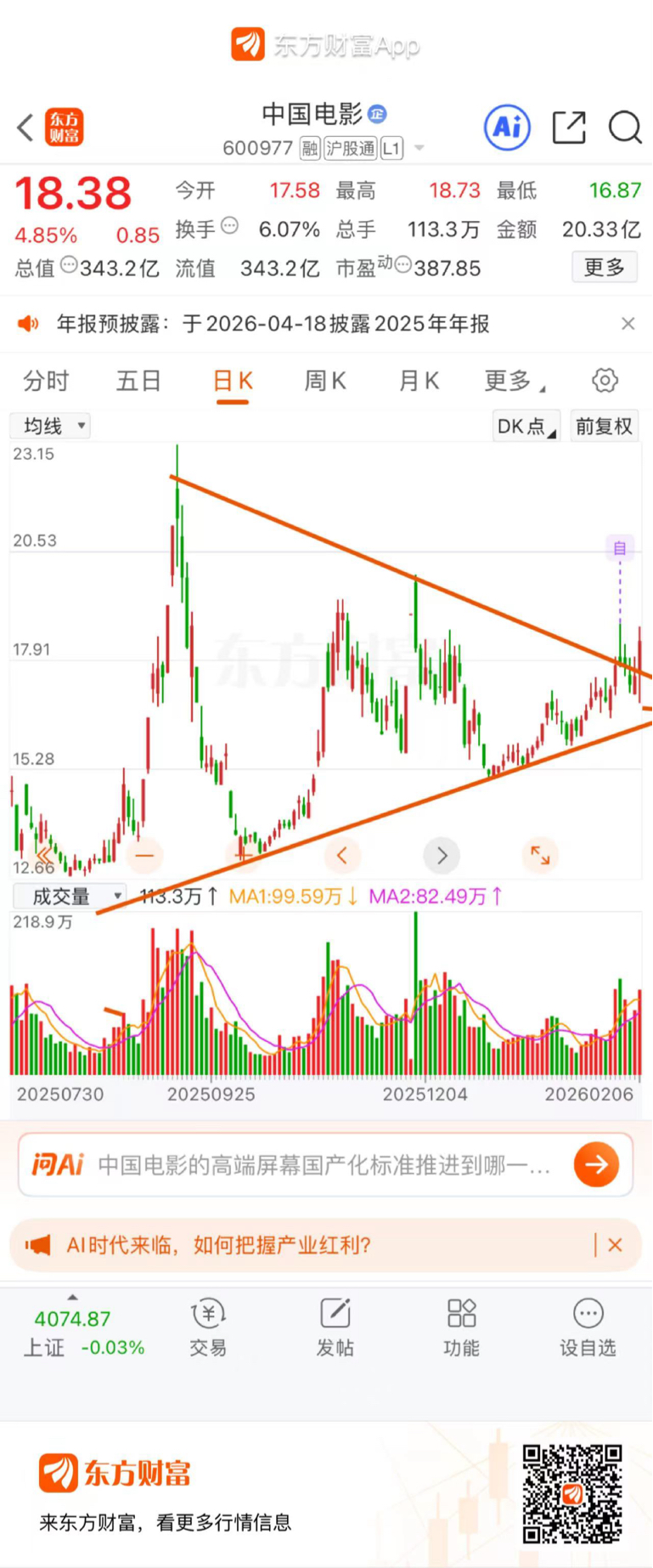 $中国电影(SH600977)$ 趋势已破,周线收阳,爆发在即