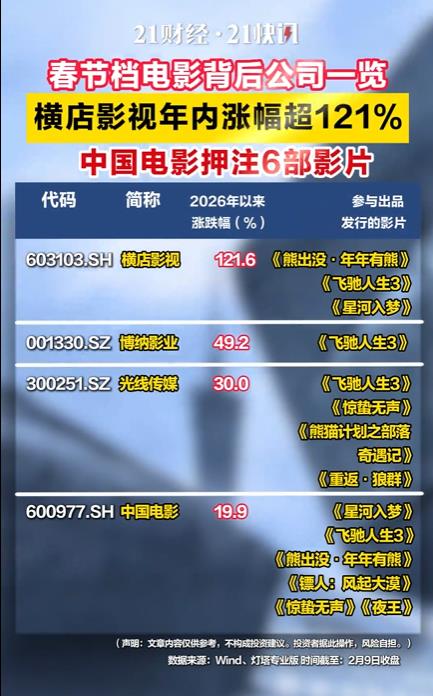 资本市场已提前反应,横店影视年内涨幅达到121.6%。