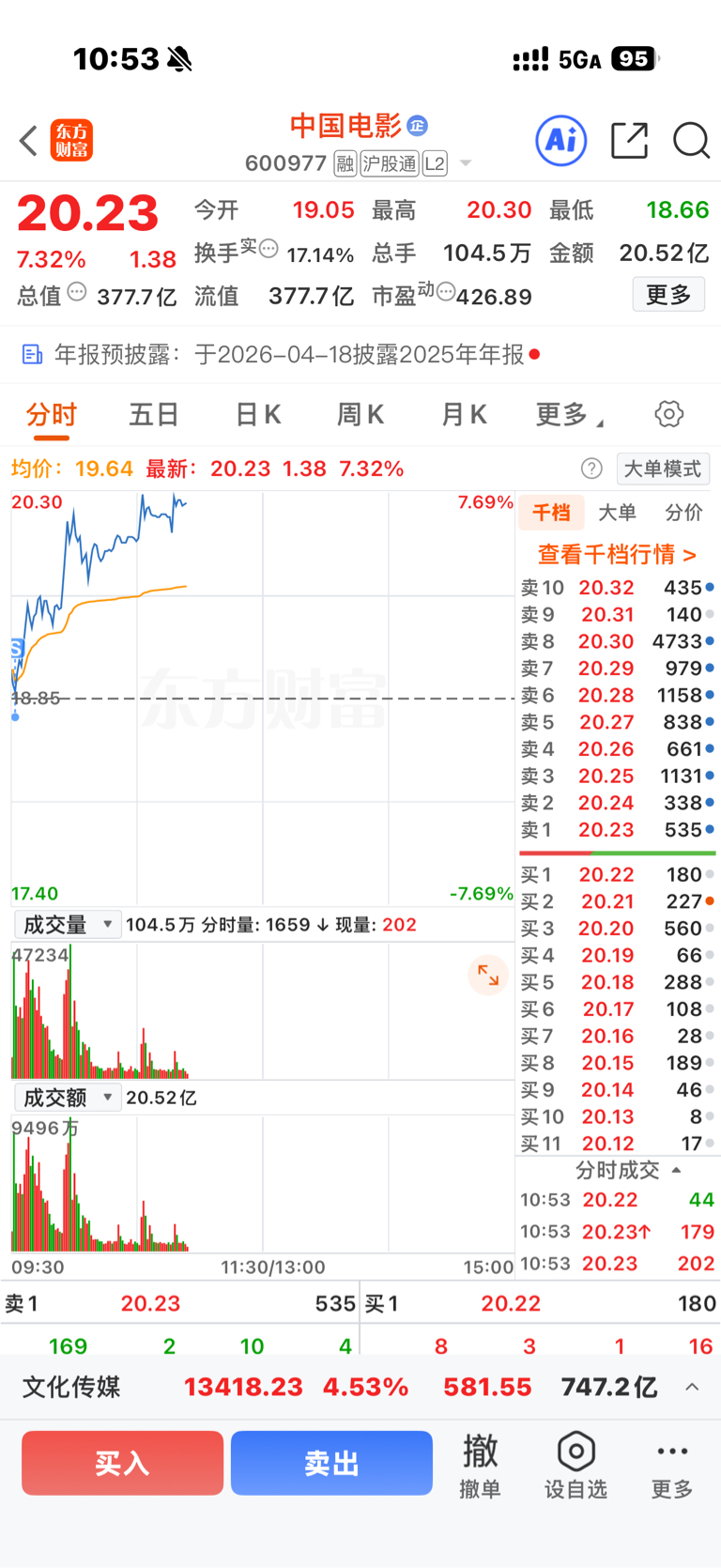 $中国电影(SH600977)$ 有没有大神帮我分析一下,为什么我总是这样?股可以选对但是就是永远卖到最低点,是真的最低点,就是这么神奇!!
