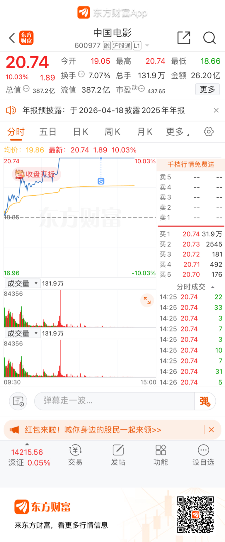 $中国电影(SH600977)$ 15块多拿了一个来月折腾到今天撤退,我看很多唱多的说什么我压根没买恶意唱空,说什么踏空了,这些人大概率是今天追高进来唱多稳住小散随时逃跑的短线客,你们自己小心吧!我只想对小散说,接下来逢高撤退,这股以后也不会再看,这狗主力太磨人了!