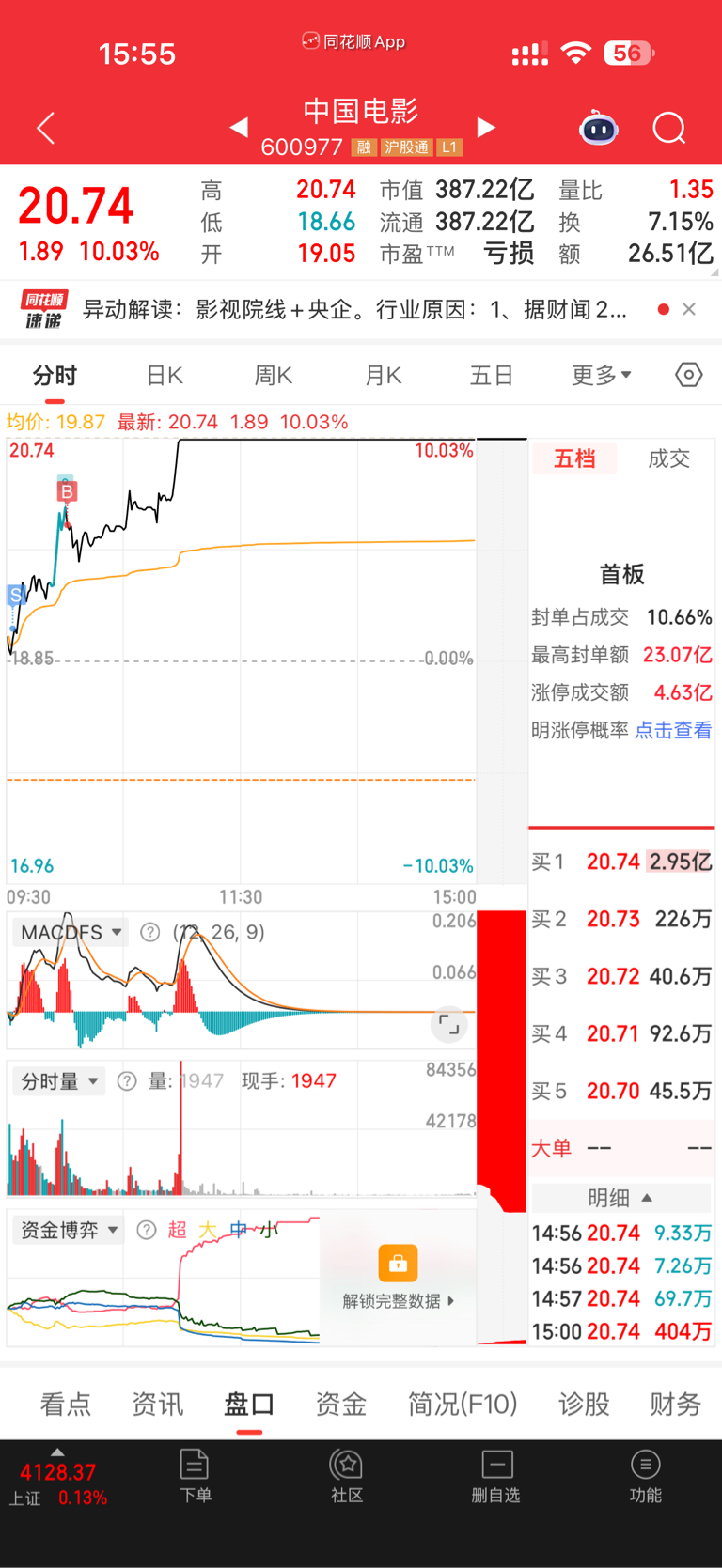 $中国电影(SH600977)$ 为什么我高兴不起来