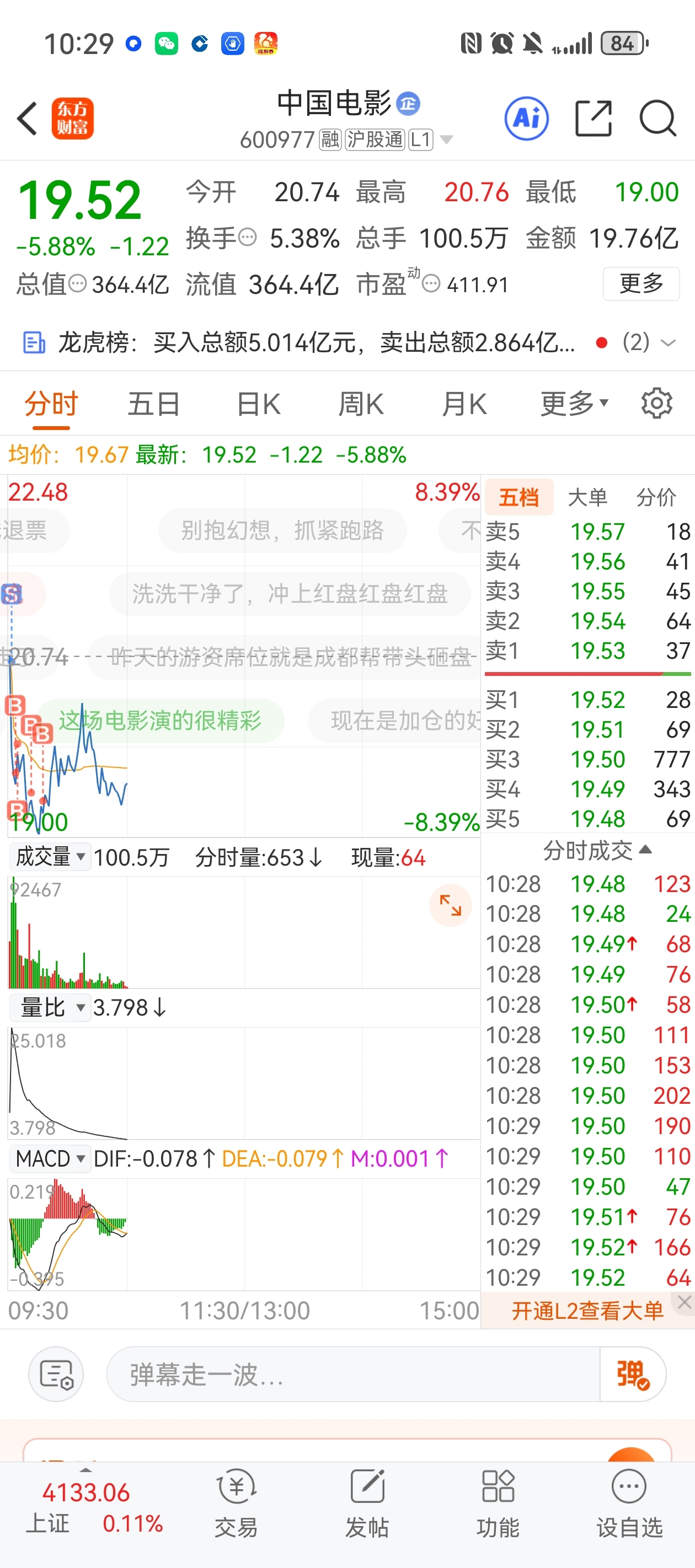 $中国电影(SH600977)$ 有开源,没意外!早上直接全仓出了,今天-7点在入,博明天反弹