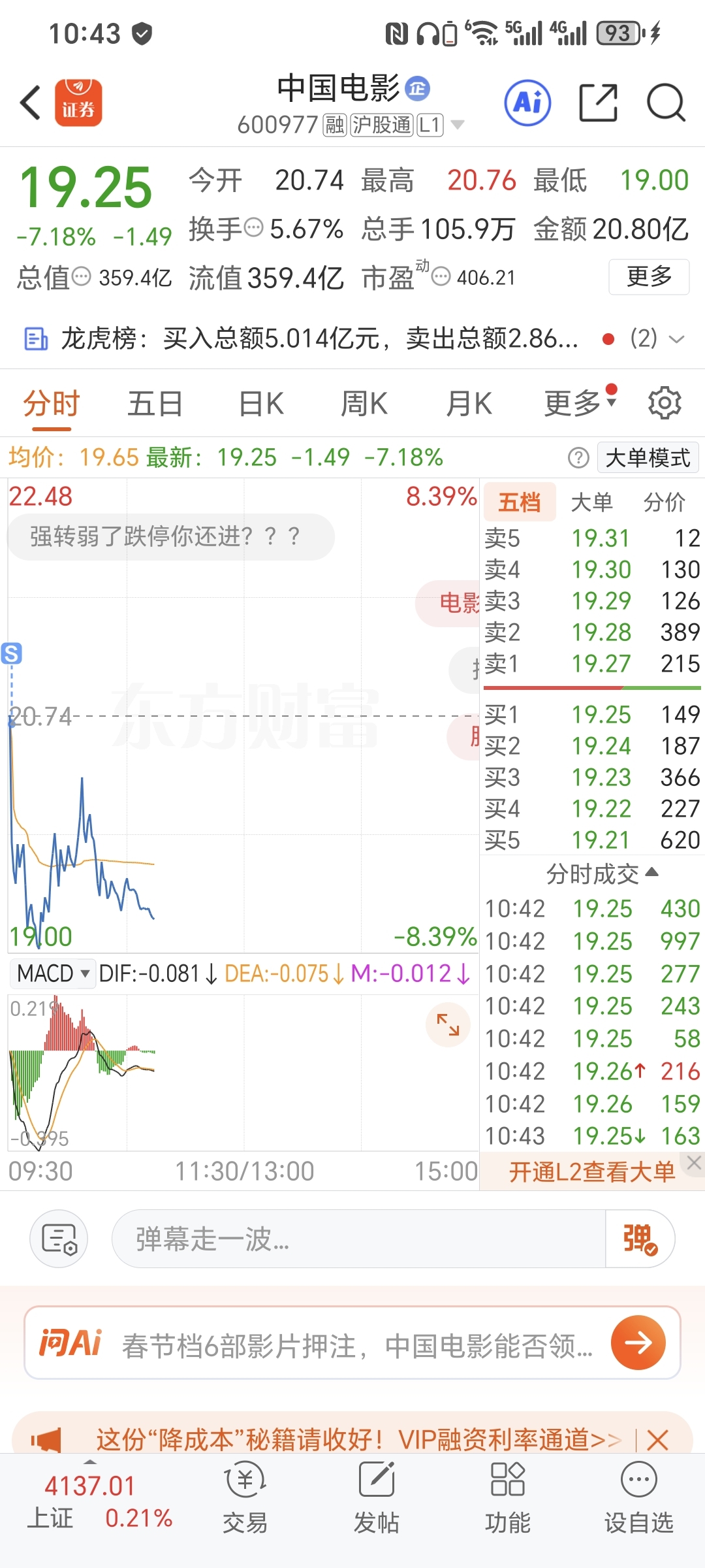 $中国电影(SH600977)$ 哪怕迟疑一秒都不行