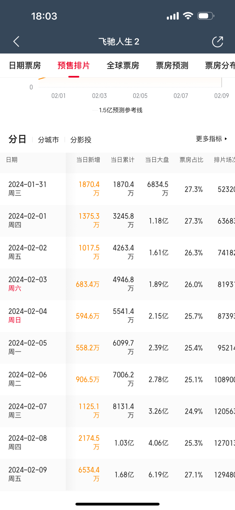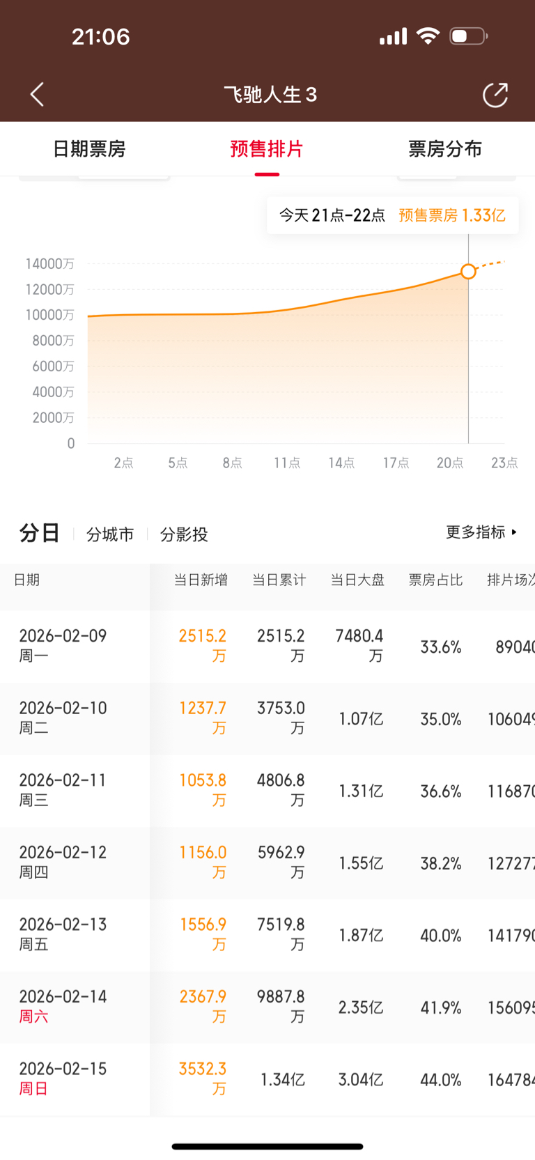 $中国电影(SH600977)$ $光线传媒(SZ300251)$ $博纳影业(SZ001330)$ 大超预期了,同样是预售7天,现在不过晚上9点钟,目前来看效果完全超越飞驰2,就连哪吒2都不是对手.这还只是飞驰人生3,还不算其他5部电影.彻底是赢赢的了