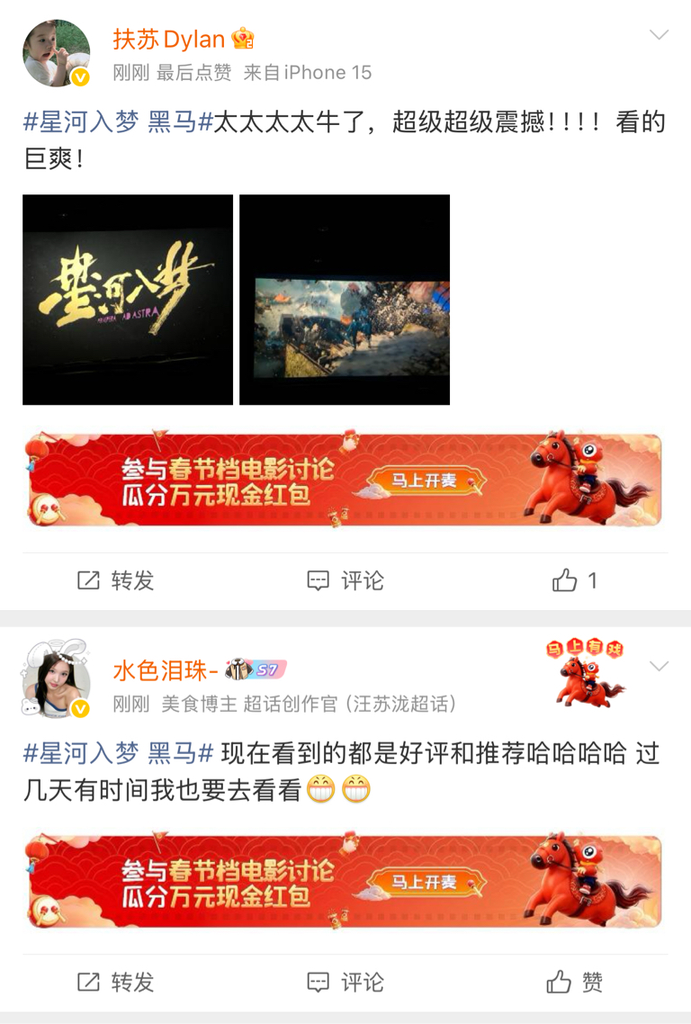 $中国电影(SH600977)$ 星河入梦口碑爆棚