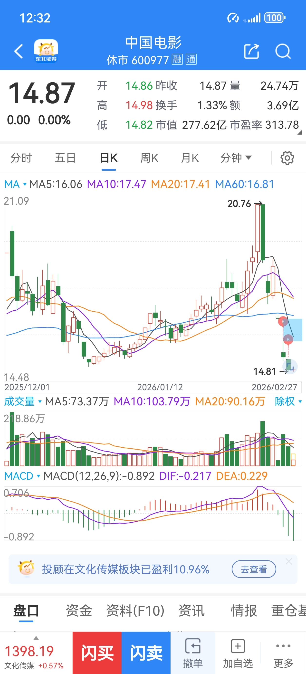 $中国电影(SH600977)$ 很无语