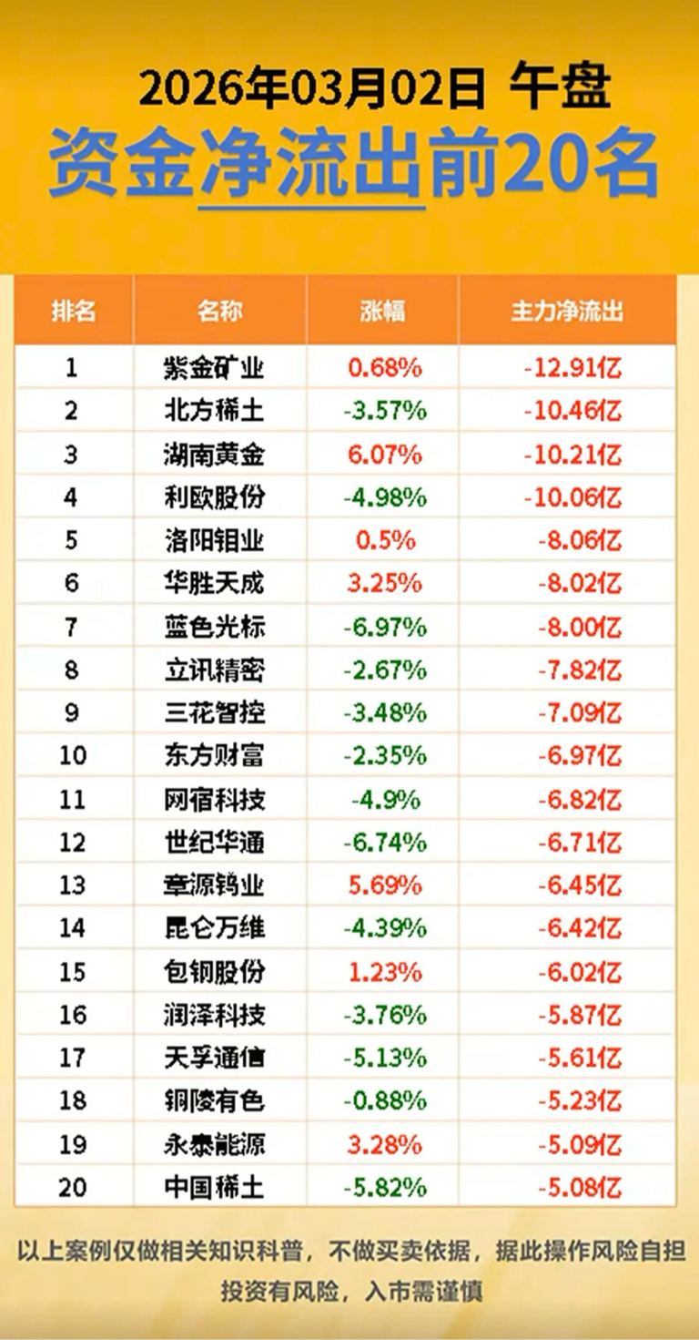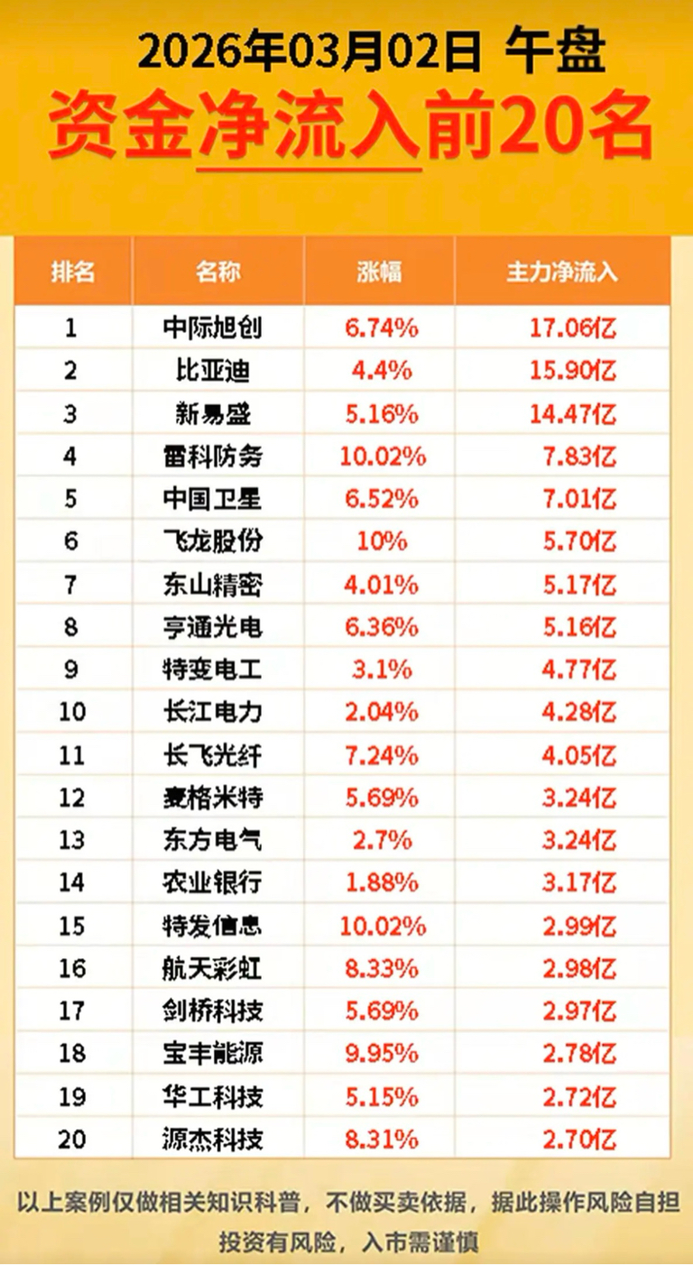 3.2周一 主力资金 抢筹出逃个股榜!