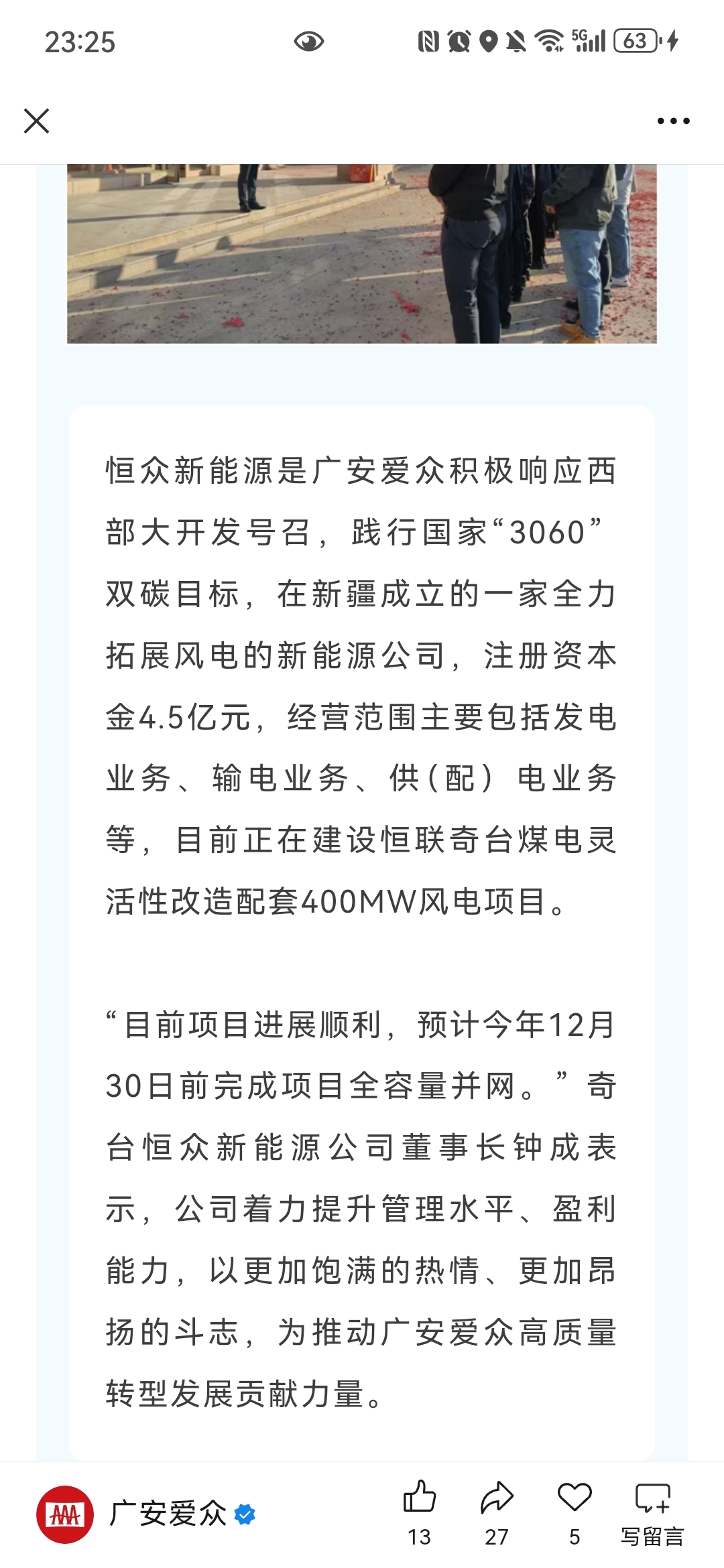 $广安爱众(SH600979)$ 零元购的风电项目年底可以全容量并网了。