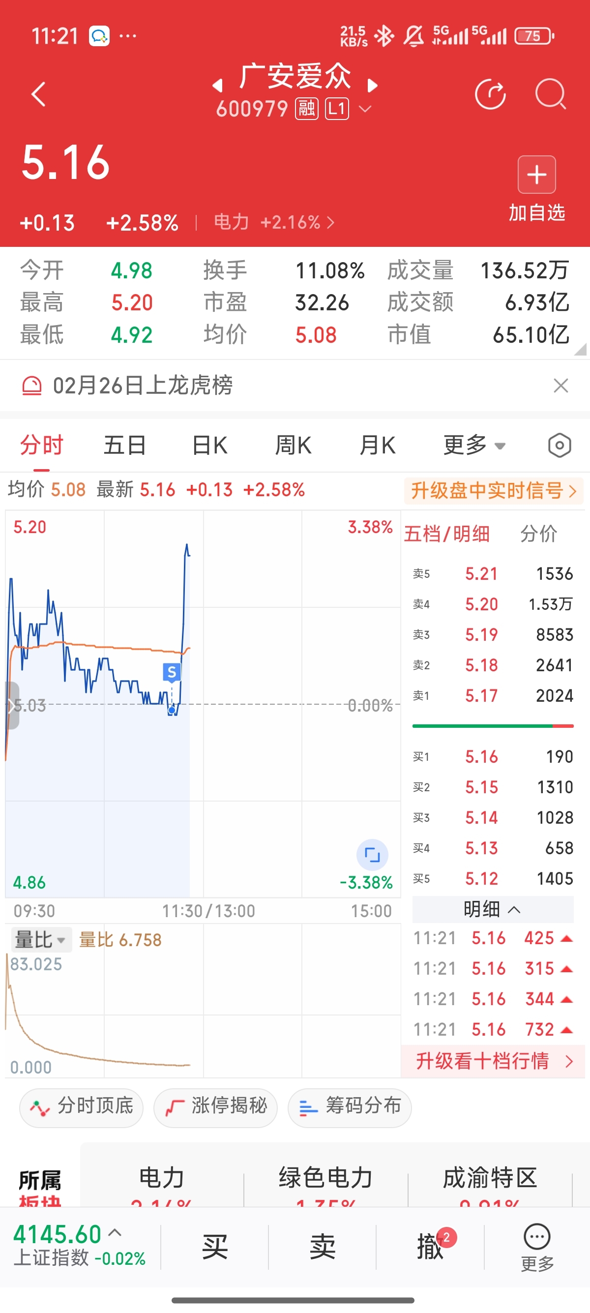 $广安爱众(SH600979)$ 昨天买赚6个点,刚跑就拉升,本来想换算力概念股的