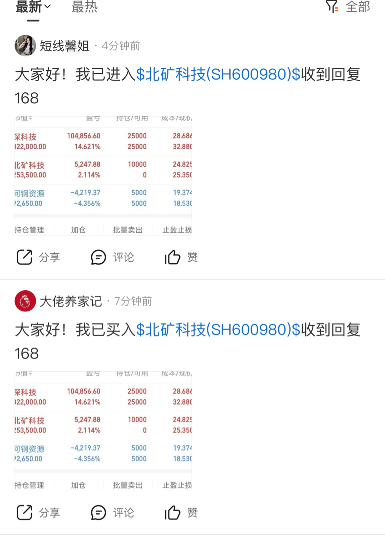 $北矿科技(SH600980)$ 打广告的来了 持仓图片都一模一样