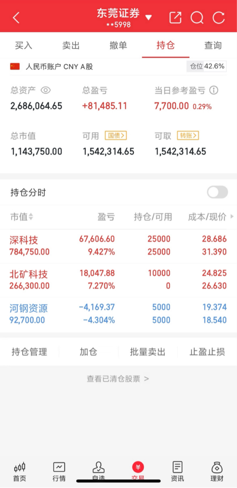 继续持有:$深科技(SZ000021)$ $河钢资源(SZ000923)$ 静待花开
