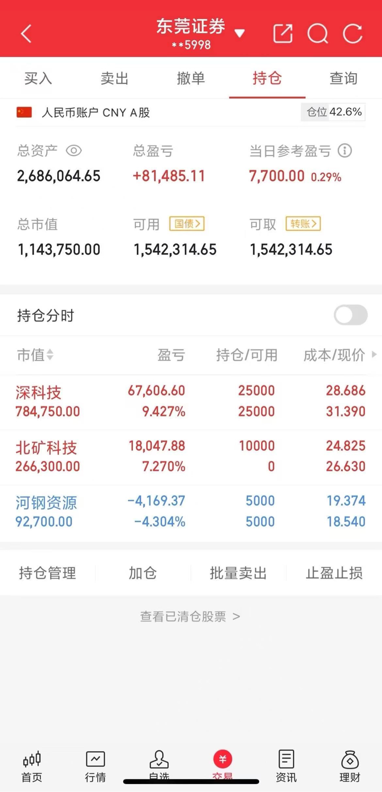继续持有:$深科技(SZ000021)$ $河钢资源(SZ000923)$