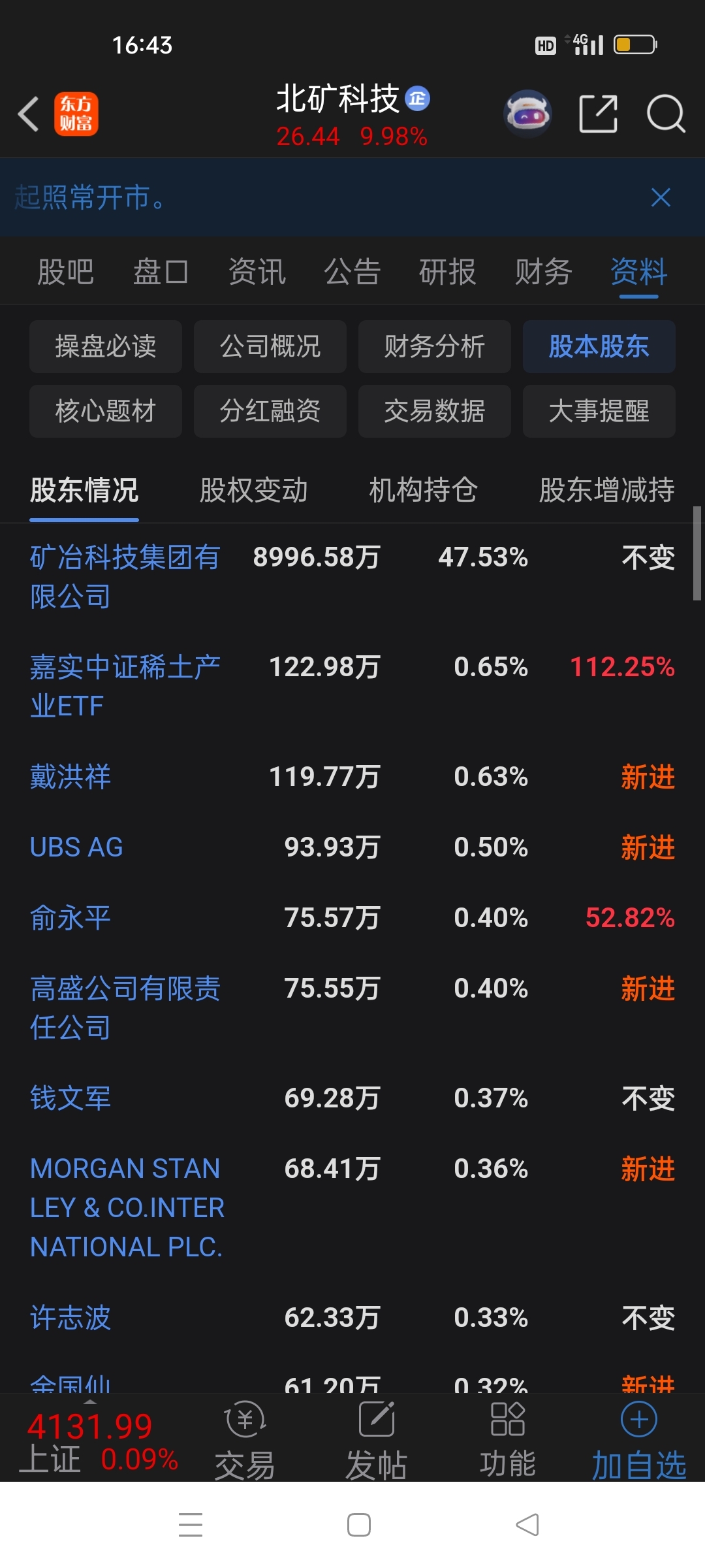 $北矿科技(SH600980)$ 认真看看这,外资比我们没眼光吗吗?股东全新杀进,没有出的。
