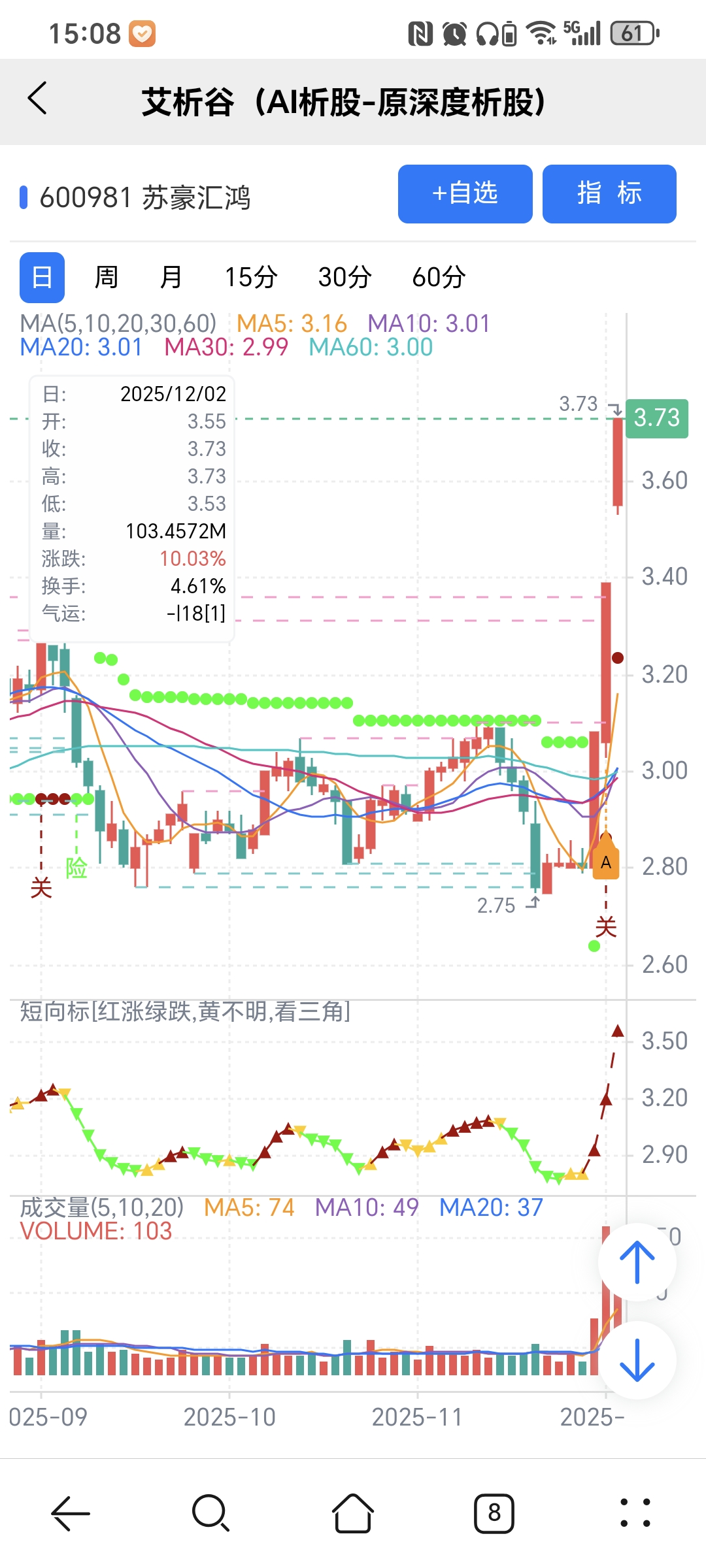 红绿小圆点是艾析谷的量化指标-超级短趋线,是趋势跟踪+突破类的量化指标,完全免费。