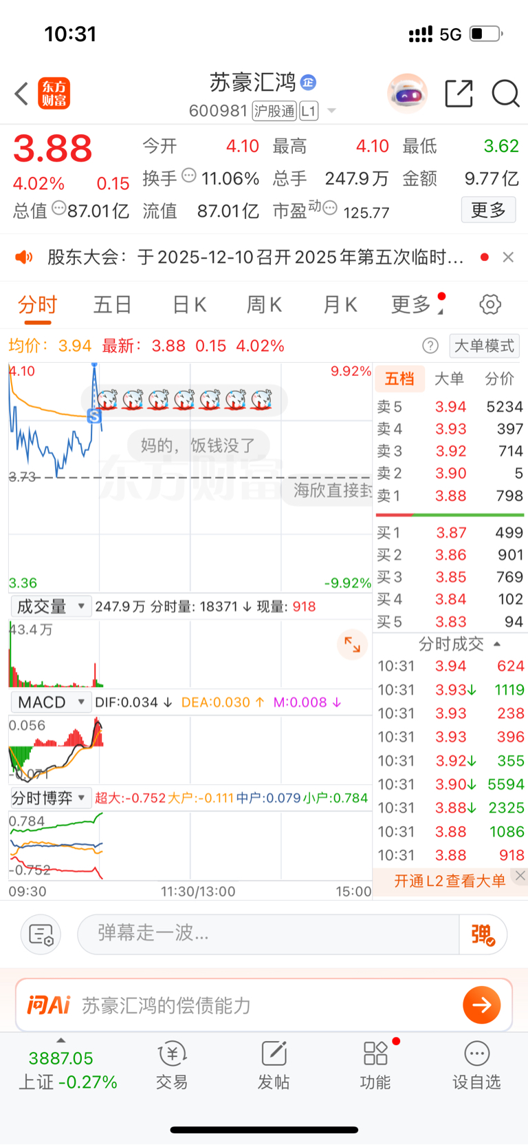 $苏豪汇鸿(SH600981)$ 原来还有惊喜,再见了豪哥