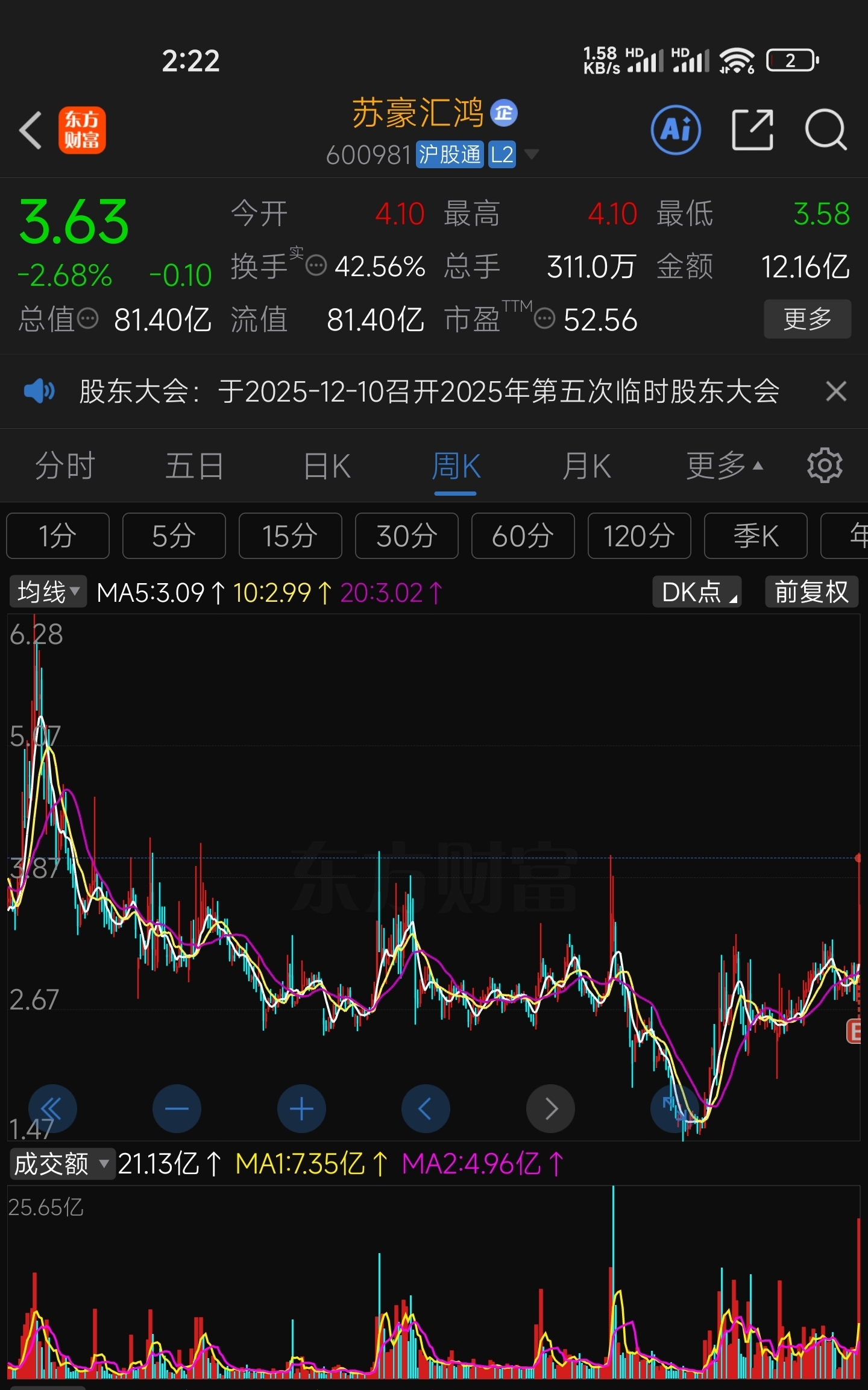 $苏豪汇鸿(SH600981)$ 拿我的成本线作条辅助线给你们看