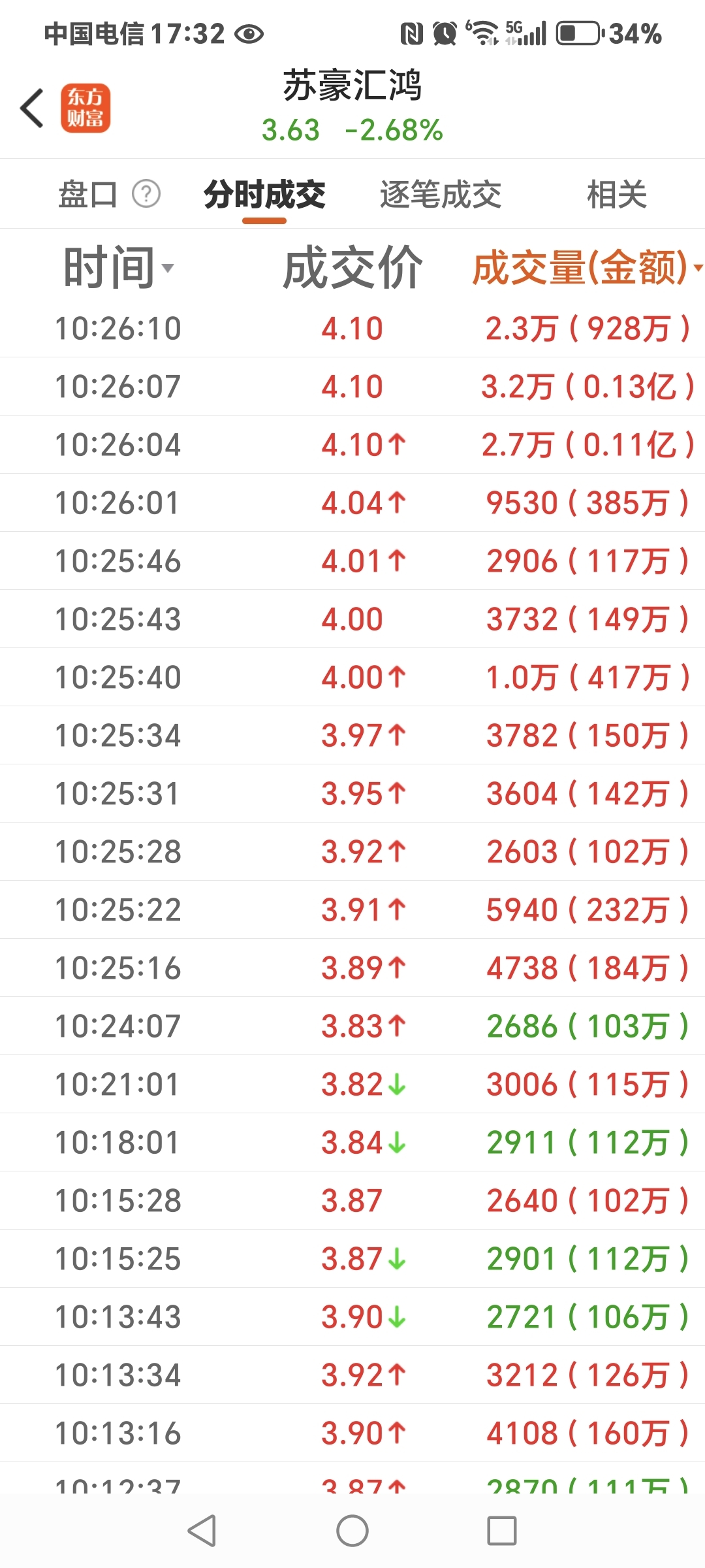 $苏豪汇鸿(SH600981)$ 三个板就今天跌这么点,也不知道大家慌什么,就算是十倍八倍的妖股,也不可能一直一路上涨,中间也回调好几次的,有的甚至回调二三十个点,看好的人就耐心持有,不看好就跑路,早上十点多那一下回封进来那么多万手单,也不可能散户有那么大能量,有些事显而易见