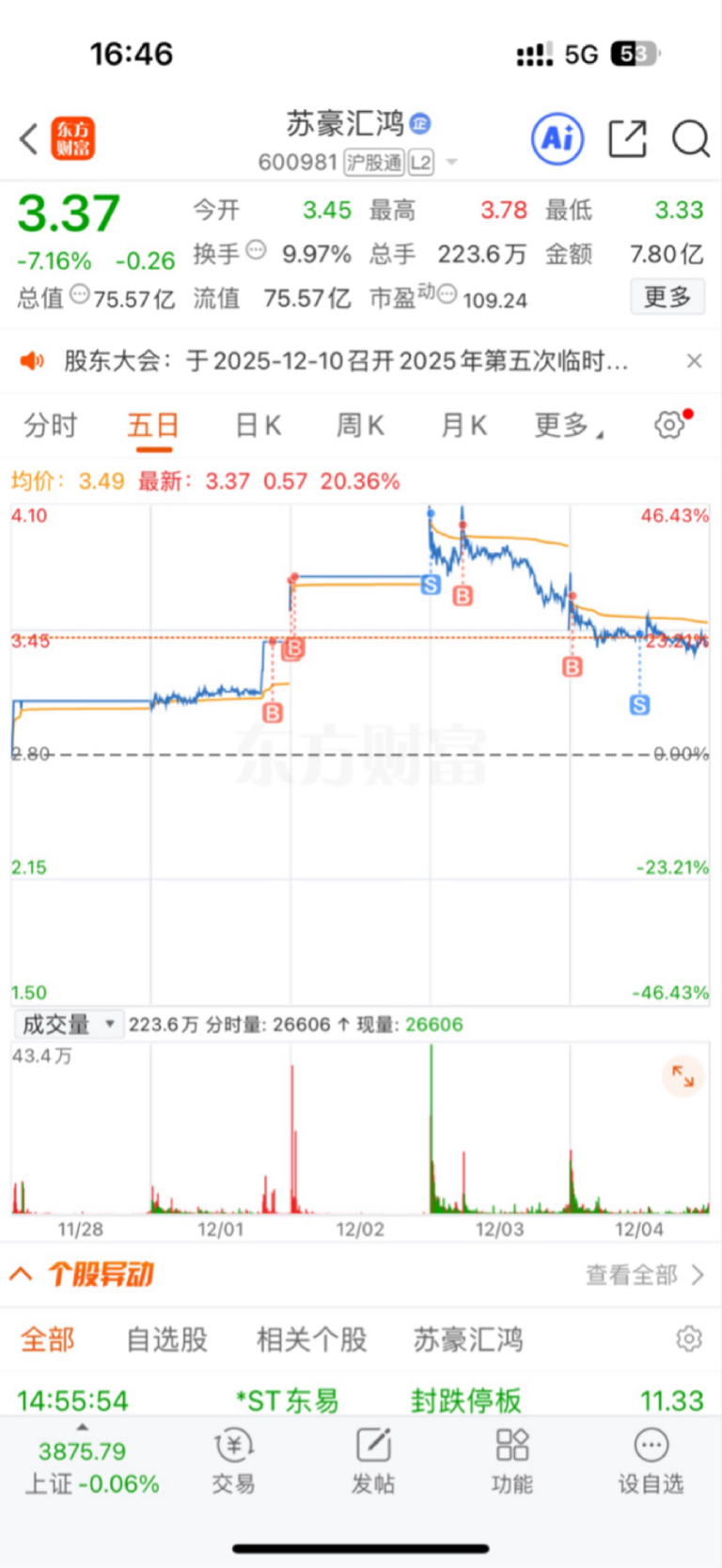 $苏豪汇鸿(SH600981)$ 被自己蠢哭了 实达也是一模一样明明两个都吃了20%来回操作利润回吐还倒贴