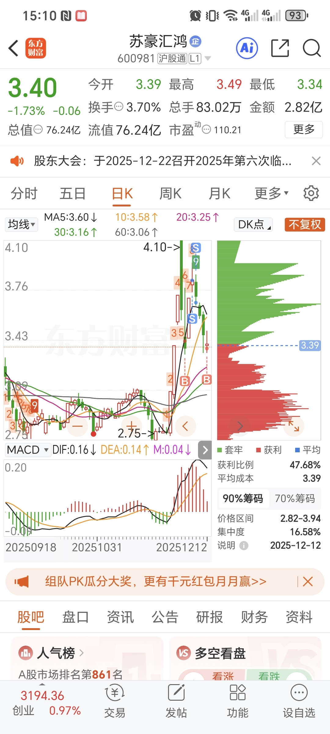 $苏豪汇鸿(SH600981)$ 我又回来了,兄弟们