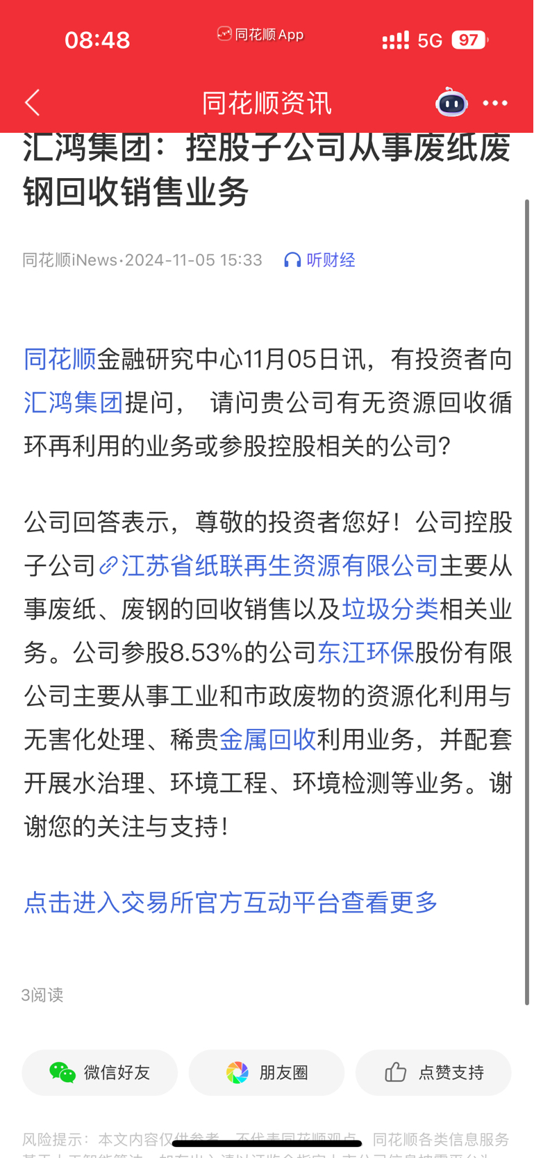 $苏豪汇鸿(SH600981)$