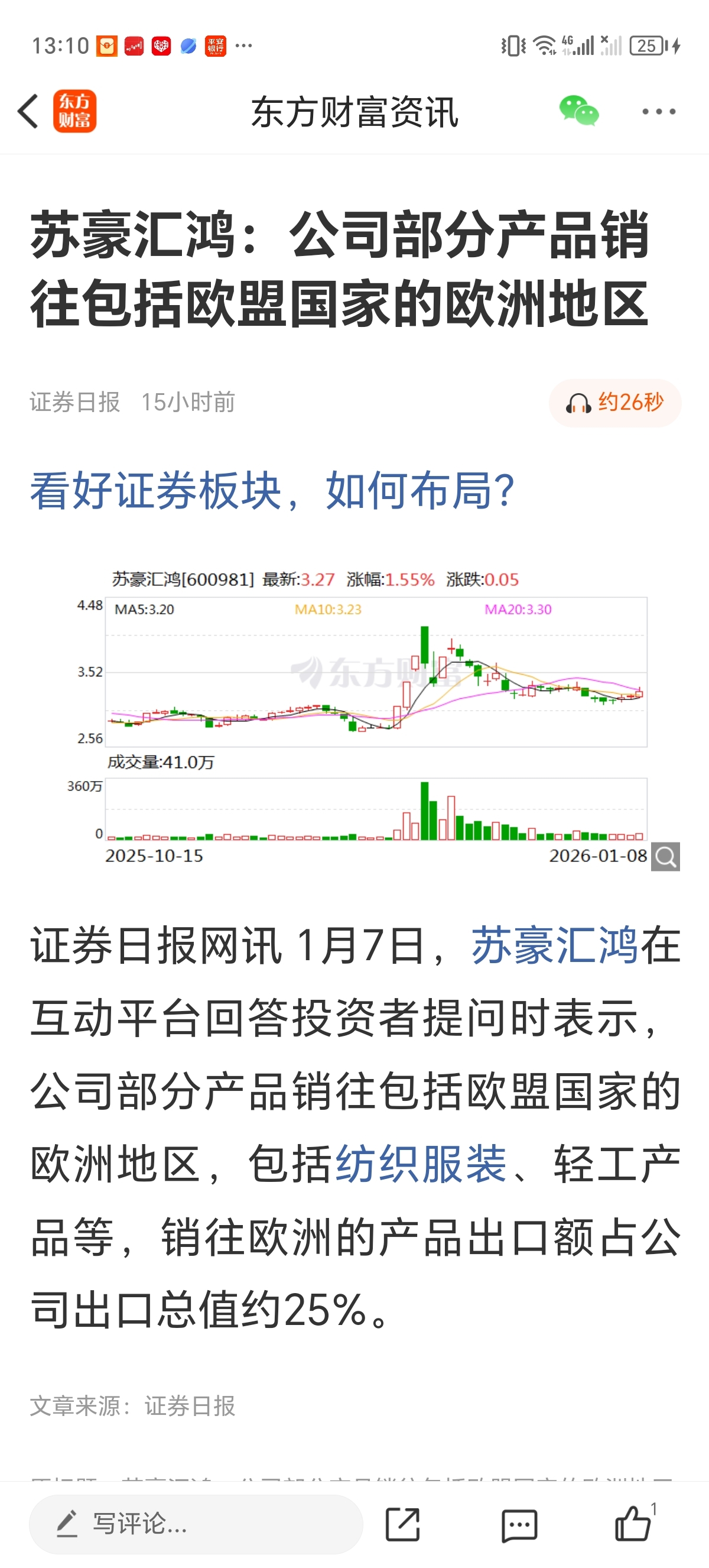$苏豪汇鸿(SH600981)$ 这大利好不来个涨停