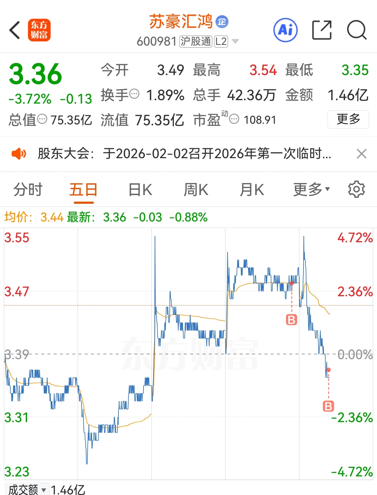 $苏豪汇鸿(SH600981)$ 后悔早上没走,这不知道要套到啥时候了
