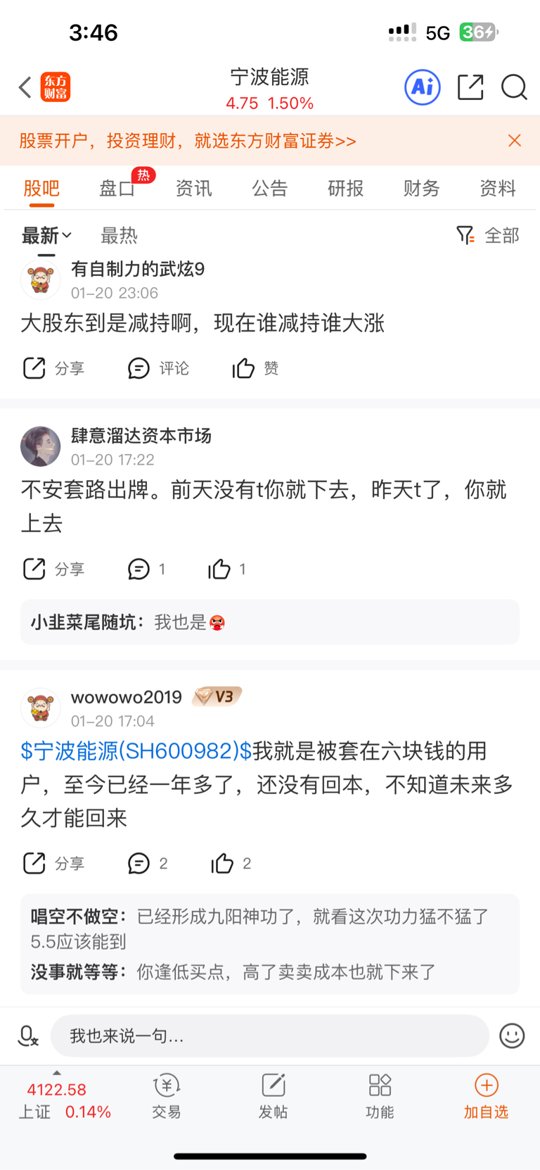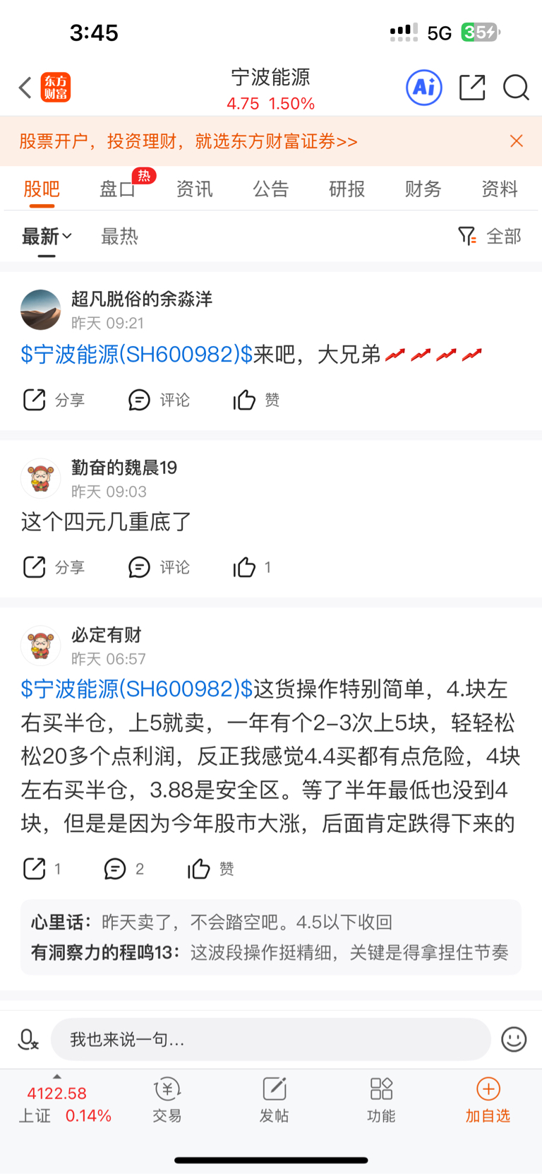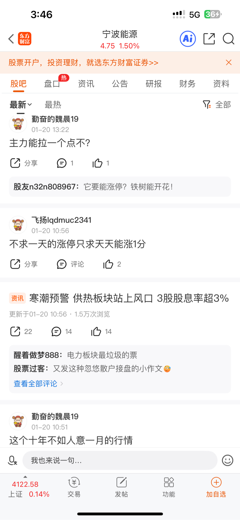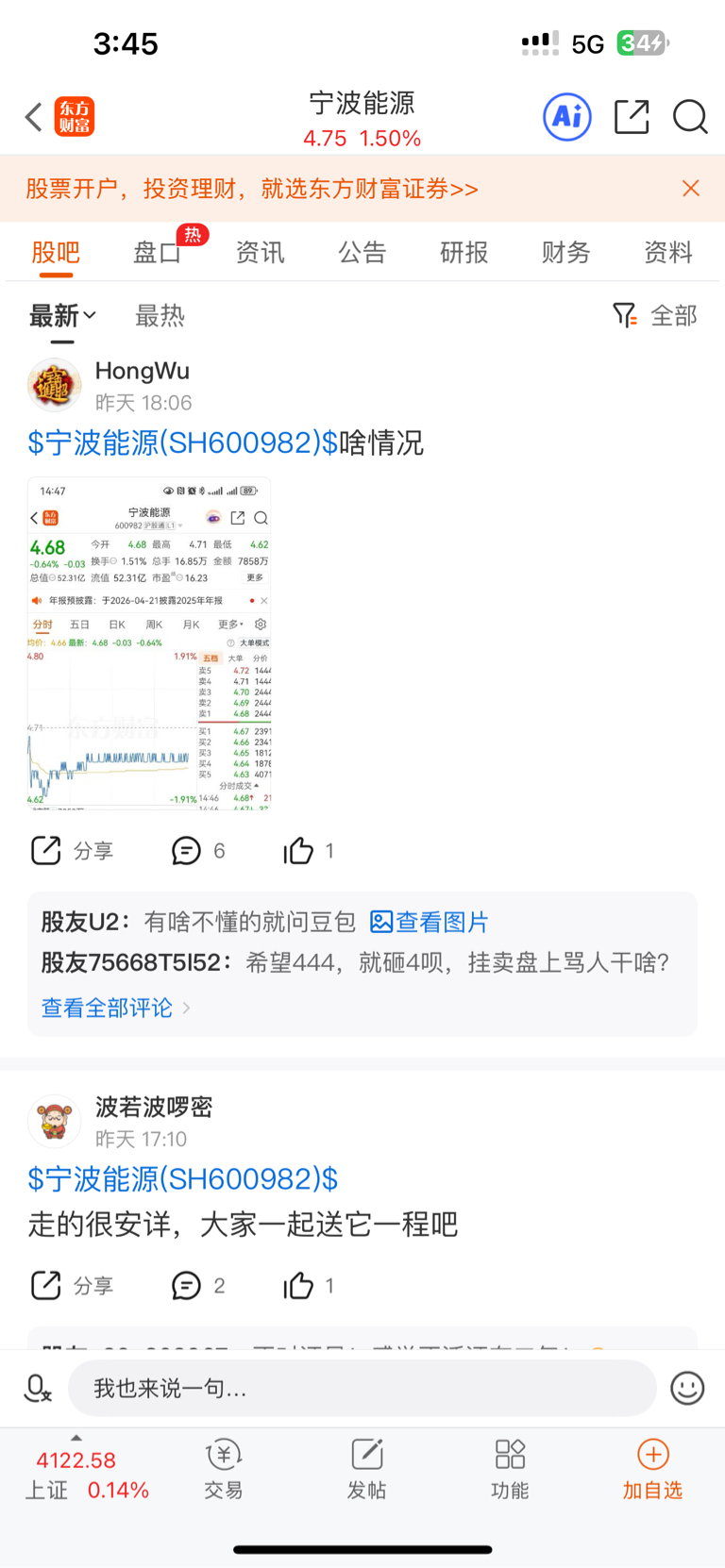 首先我们看看宁波能源的股吧(详见一下附图)