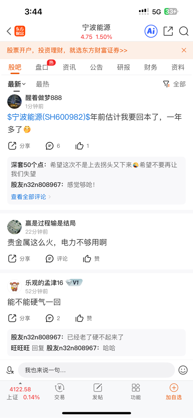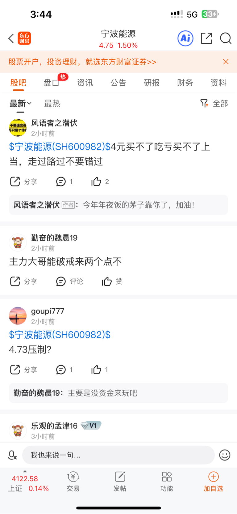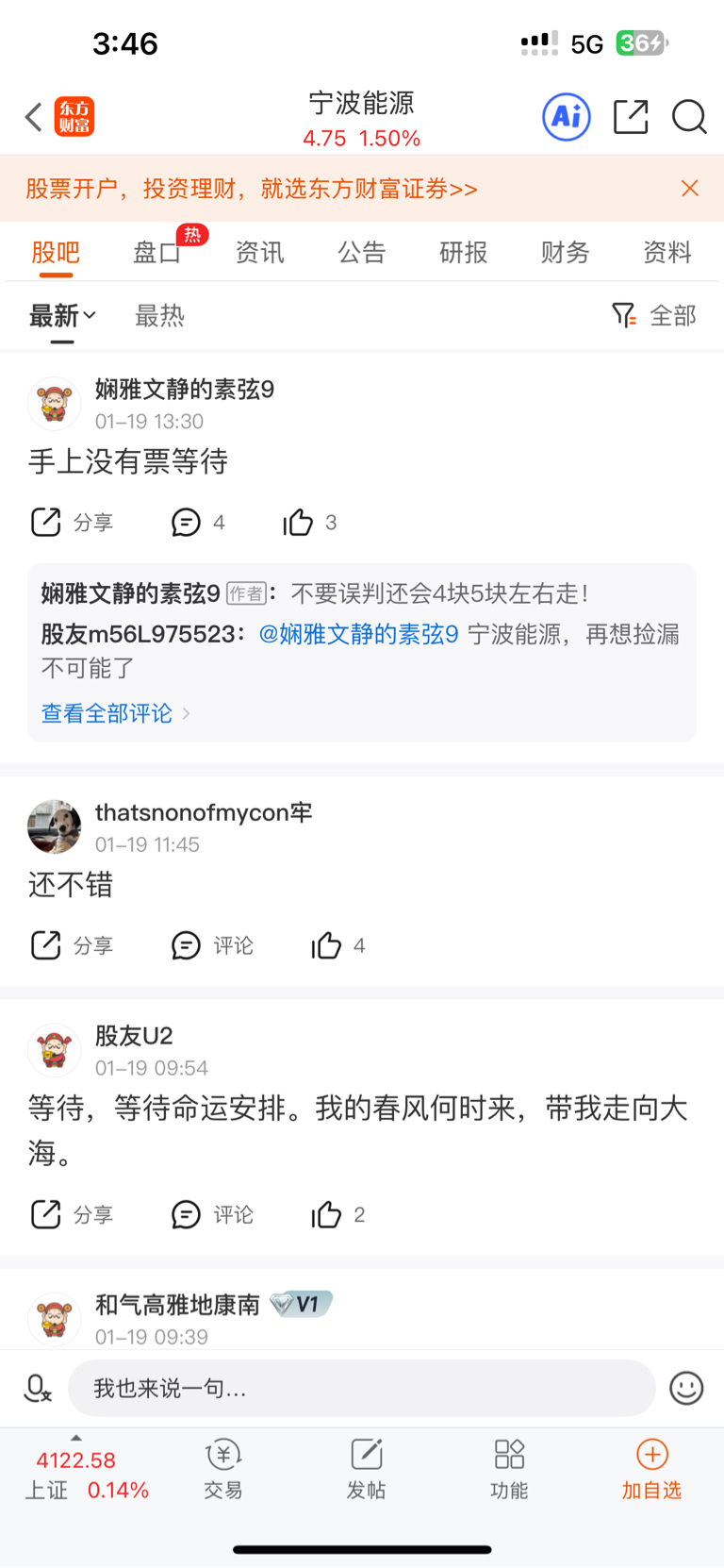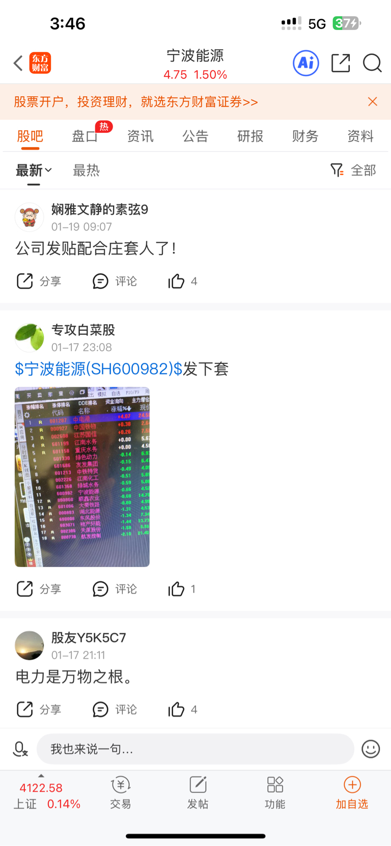 首先我们看看宁波能源的股吧(详见一下附图)