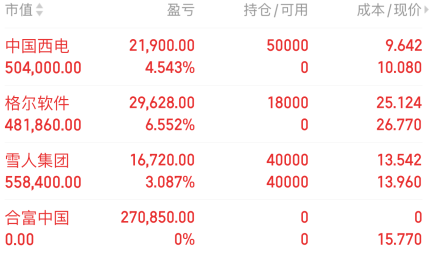 雪人集团;今天早上先是小幅低开,刚好开在5日线附近,开盘后没有继续回落短线在均线一带还是有一定支撑,后面开始震荡走高,日内也算得到了修复,虽然力度一般,但考虑到福建板块还有人气,加上他在5日线有止跌企稳迹象,还是想先拿着过周,看下周能不能继续发力。