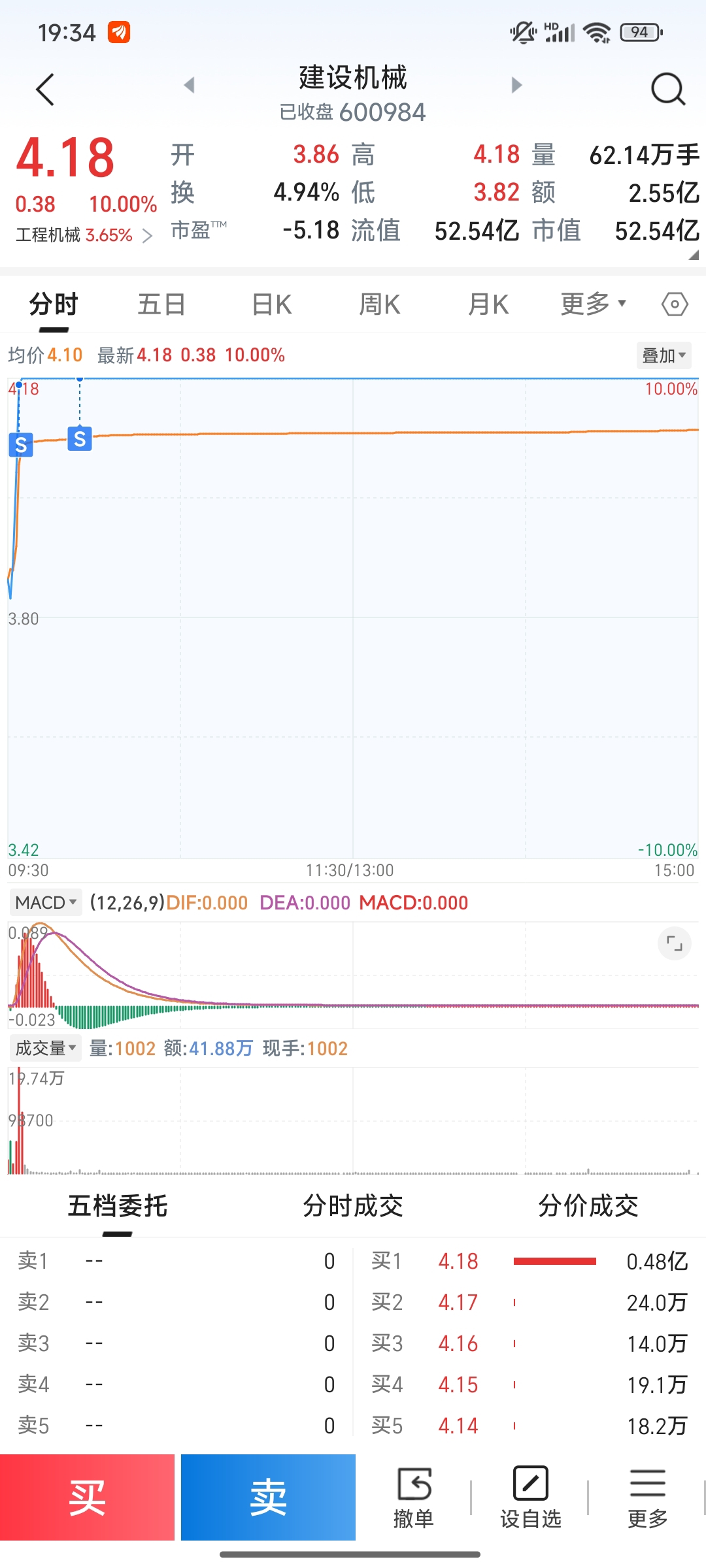 $建设机械(SH600984)$ 我今天跑了,你使劲涨吧