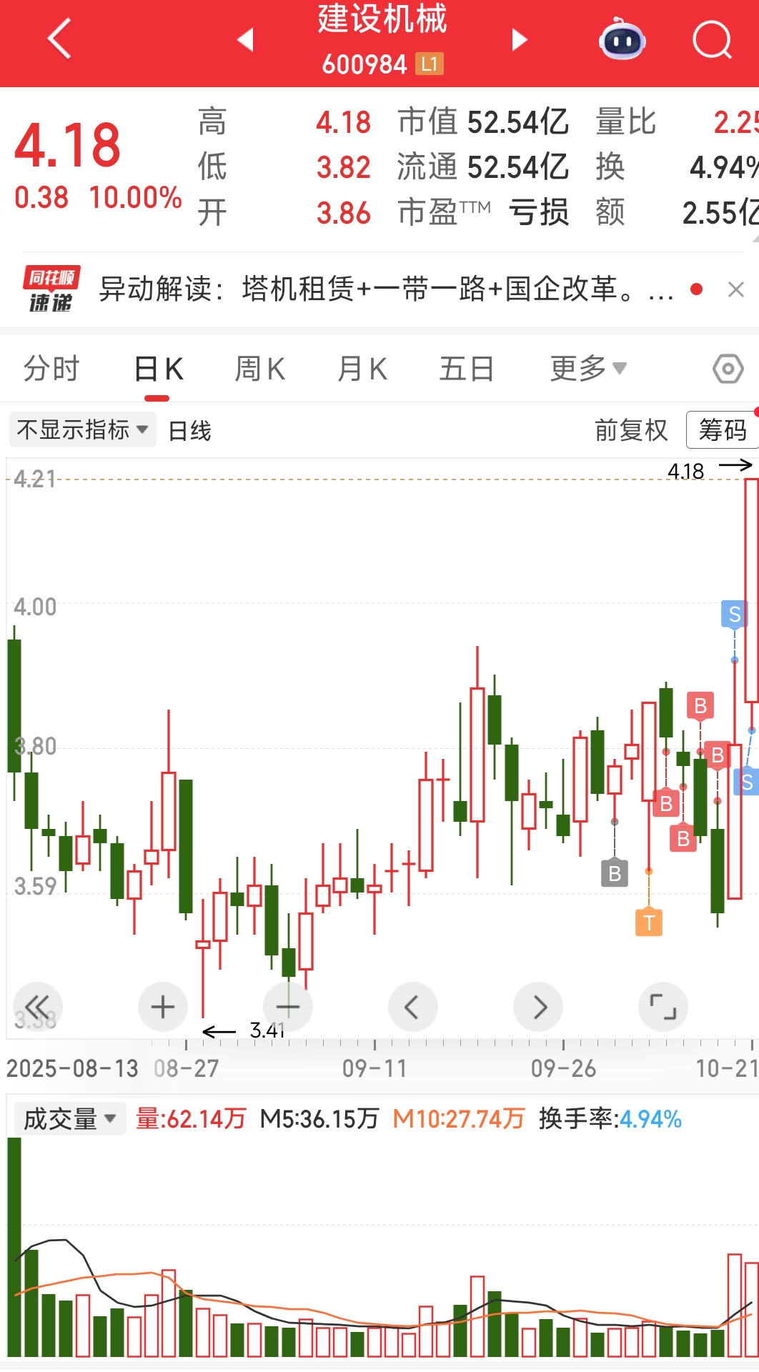 $建设机械(SH600984)$ 连续涨停板要来了,姐姐睡了,姐姐不再寂寞,嘻嘻